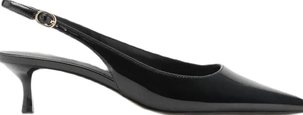Effekt i patentlæder, Slingback-Design, Spids, Kitten-hæl, 5 cm hæl, Spændelukning ved anklen