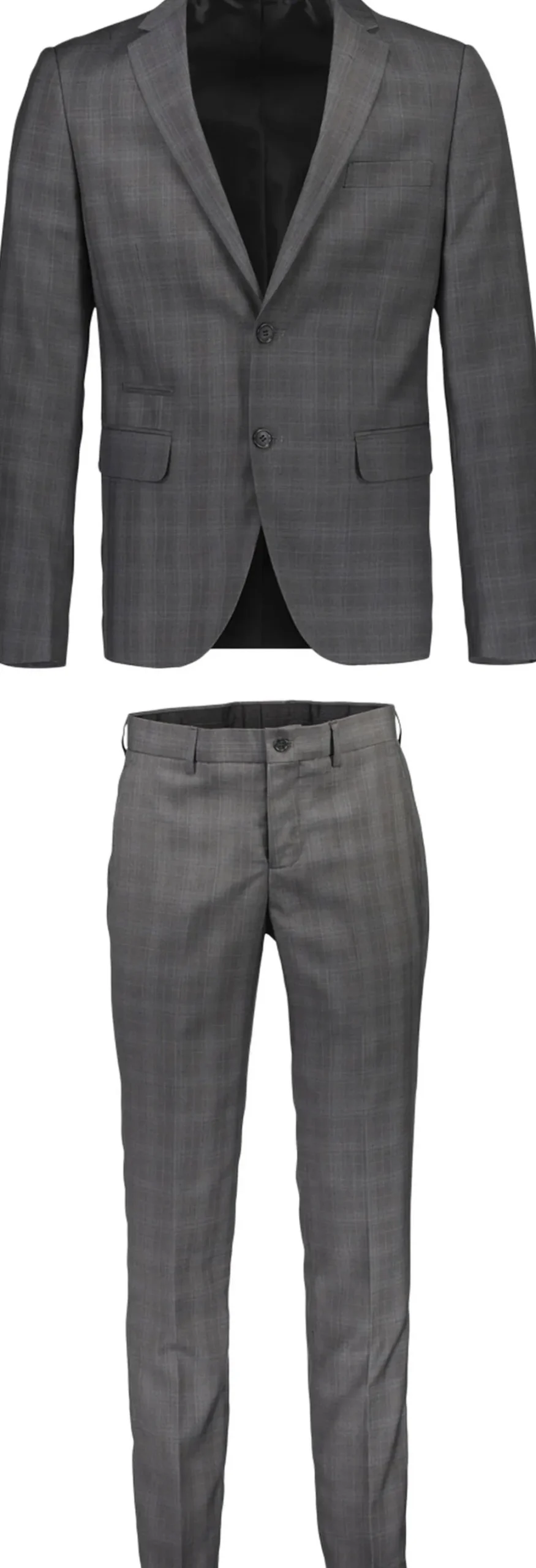 Hel jakkesæt fra Lindbergh. Jakkesættet er ternet, og i klassisk snit med to knapper på blazer. Blazeren har to slidser bagpå for ekstra bevægelsesfrihed.