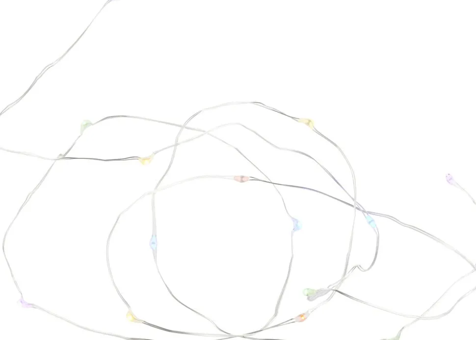 Sirius Knirke Lyskæden er lavet med en fin sølvtråd der giver lyskæden et flot udtryk. På kæden er der 20 meget små (0,5 cm) LED lys. Meget fin kæde til alverdens dekorationer, som lyseffekt i de blomsterdekorationer, eller måske som borddekoration til fest og brylluper. Kæden er 1,9 meter lang, og har et varmt naturligt lys. Lyskæden er batteridrevet. Batterier medfølger ikke.