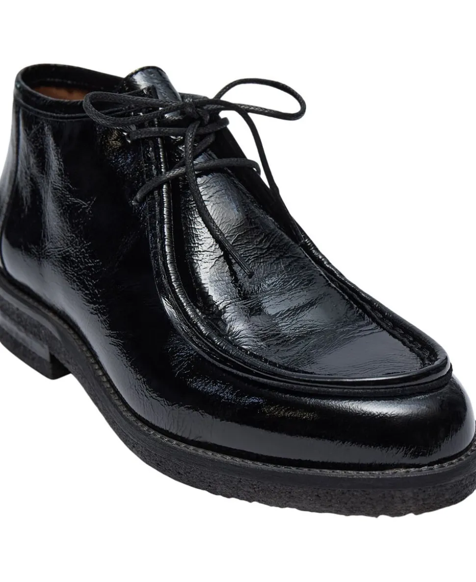 Kort støvle fra Billi Bi i en lækker, blank læderkvalitet. Støvlen er enkel i modellen med snørelukning på fronten, en præget sål samt sømdetaljer. Et par skønne støvler i den bedste kvalitet.