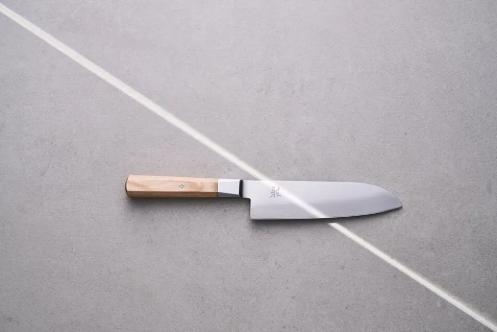 Santoku fra MIYABI 4000FC serien med en bladlængde på hele 180 mm. Santoku er den bedst sælgende knivtype i Japan, hvilket ikke er underligt, da knivtypen er meget alsidig og kan bruges til at skære både fisk, kød og grøntsager.