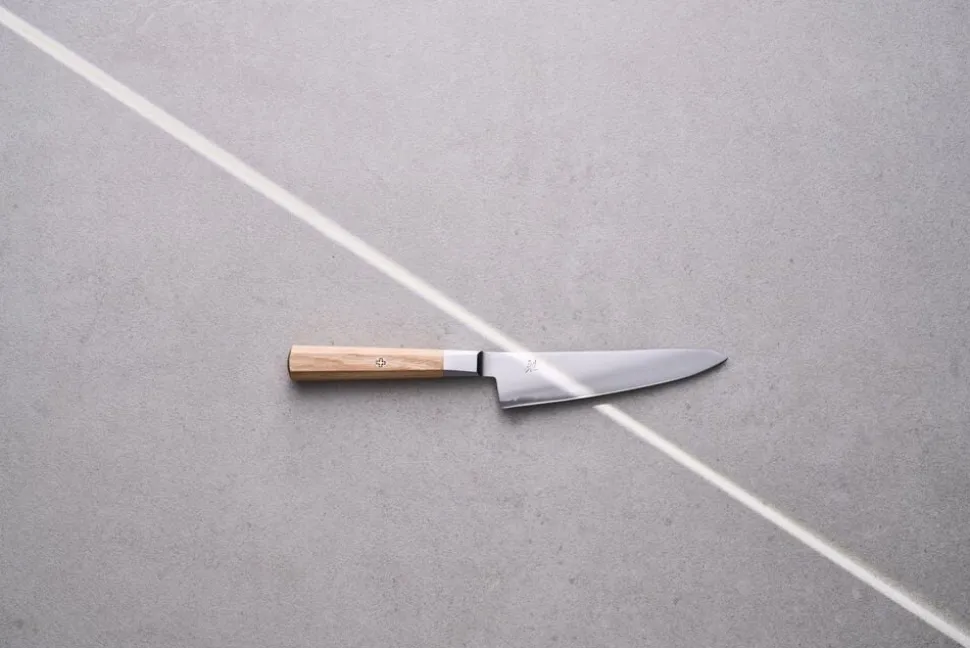 Shotoh fra MIYABI 4000FC serien med en bladlængde på 140 mm. Shotoh er den mest populære kniv i Japan efter santoku og bruges til at skrælle, skære og snitte frugt og grønt.
