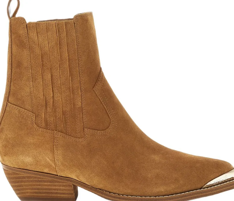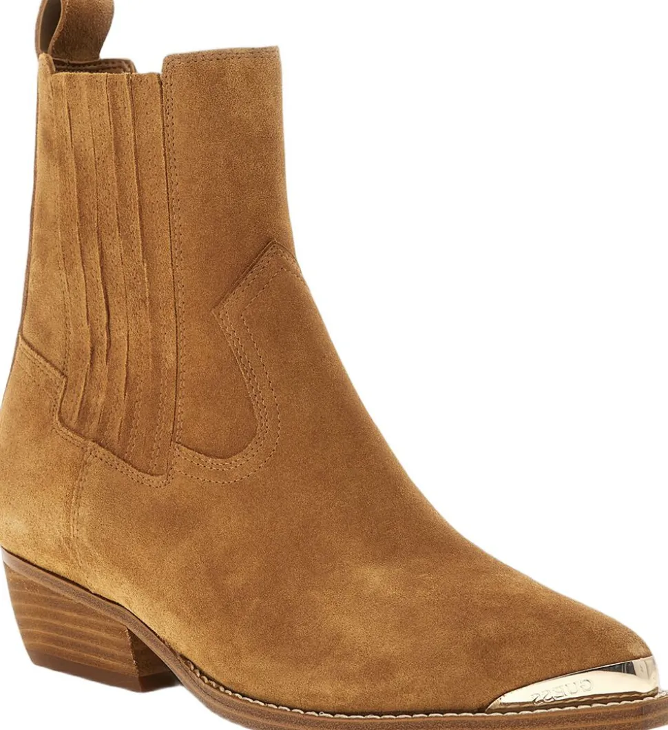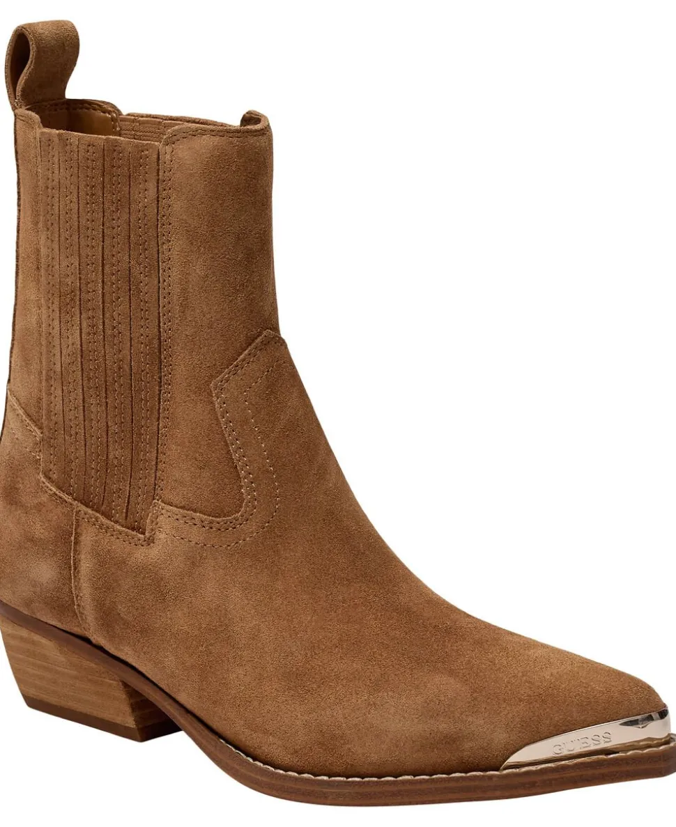 Cowboystøvle fra GUESS i en lækker ruskindskvalitet. Støvlen er enkel i modellen med western-inspirerede referencer i form af de karakteristiske syninger, en skrå, tyk hæl samt en spids snude. En super lækker cowboystøvle i en smuk kvalitet.