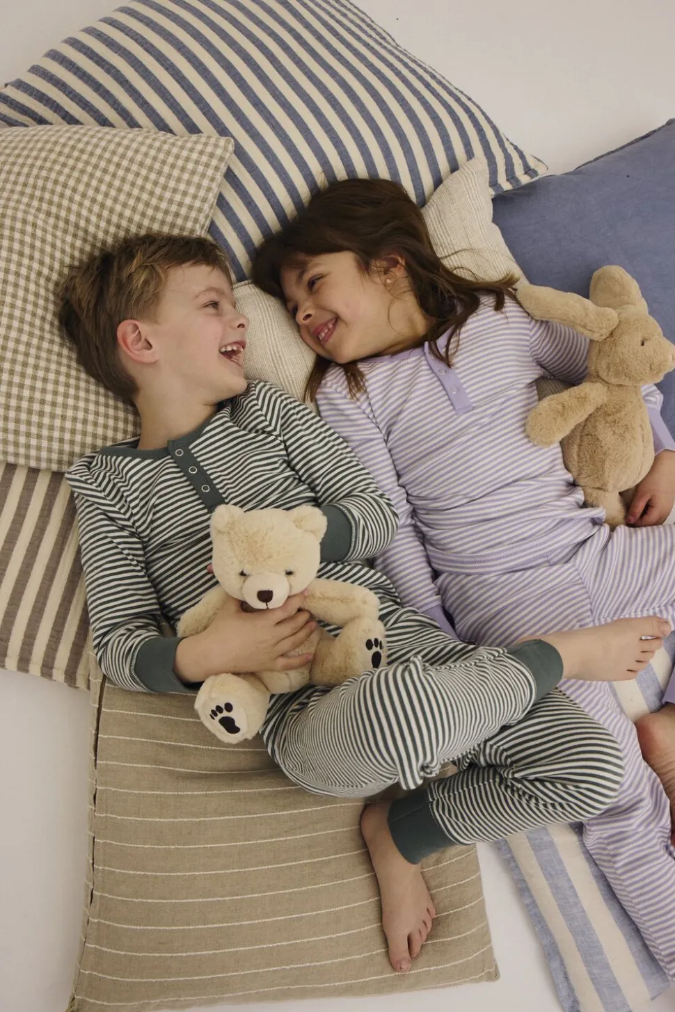 Pyjamas fra Magasin du Nord Collection i den blødeste kvalitet af 100% økologisk bomuld med GOTS-certificering. Sættet består af en langærmet bluse og et par bukser med et fint, ternet stribet, brede ribkanter samt en smal pasform. Derudover har bukserne en bred elastik i taljen, og blusen har en rund halsudskæring med knaplukning på fronten. En skøn pyjamas i den absolut lækreste kvalitet.