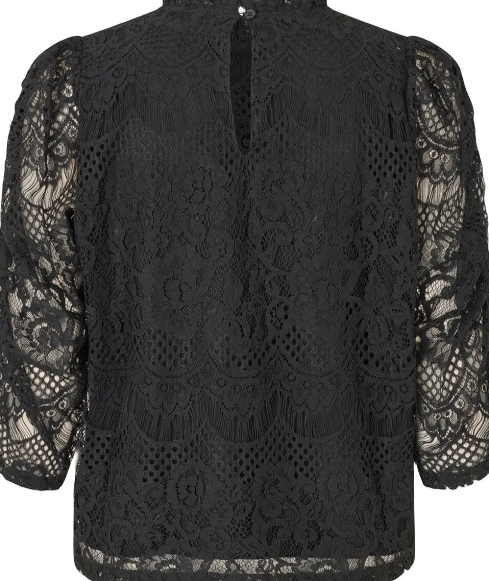 Denne smukke sorte blondebluse kombinerer et Exclusive look med feminine detaljer. Den høje rynkede krave og elegante knaplukning bagpå skaber et raffineret udtryk, mens de let gennemsigtige ærmer giver et strejf af romantik. Sæt den sammen med EverLL-nederdelen i samme materiale for at få et komplet sæt. •Exclusive sort blonde •Feminin høj krave med flæsekant •Elegant knaplukning bagpå •Perfekt til at style med EverLL-nederdelen — Mål- XS- Bryst 96 cm / Længde 56 cm / Ærmelængde 38 cm S- Bryst 100 cm / Længde 57 cm / Ærmelængde 38,5 cm M- Bryst 104 cm / Længde 58 cm / Ærtellængde 39 cm L- Bryst 110 cm / Længde 59 cm / Ærtellængde 39,5 cm XL- Bryst 116 cm / Længde 60 cm / Ærtellængde 40 cm XXL – Bryst 12 cm / 12 cm