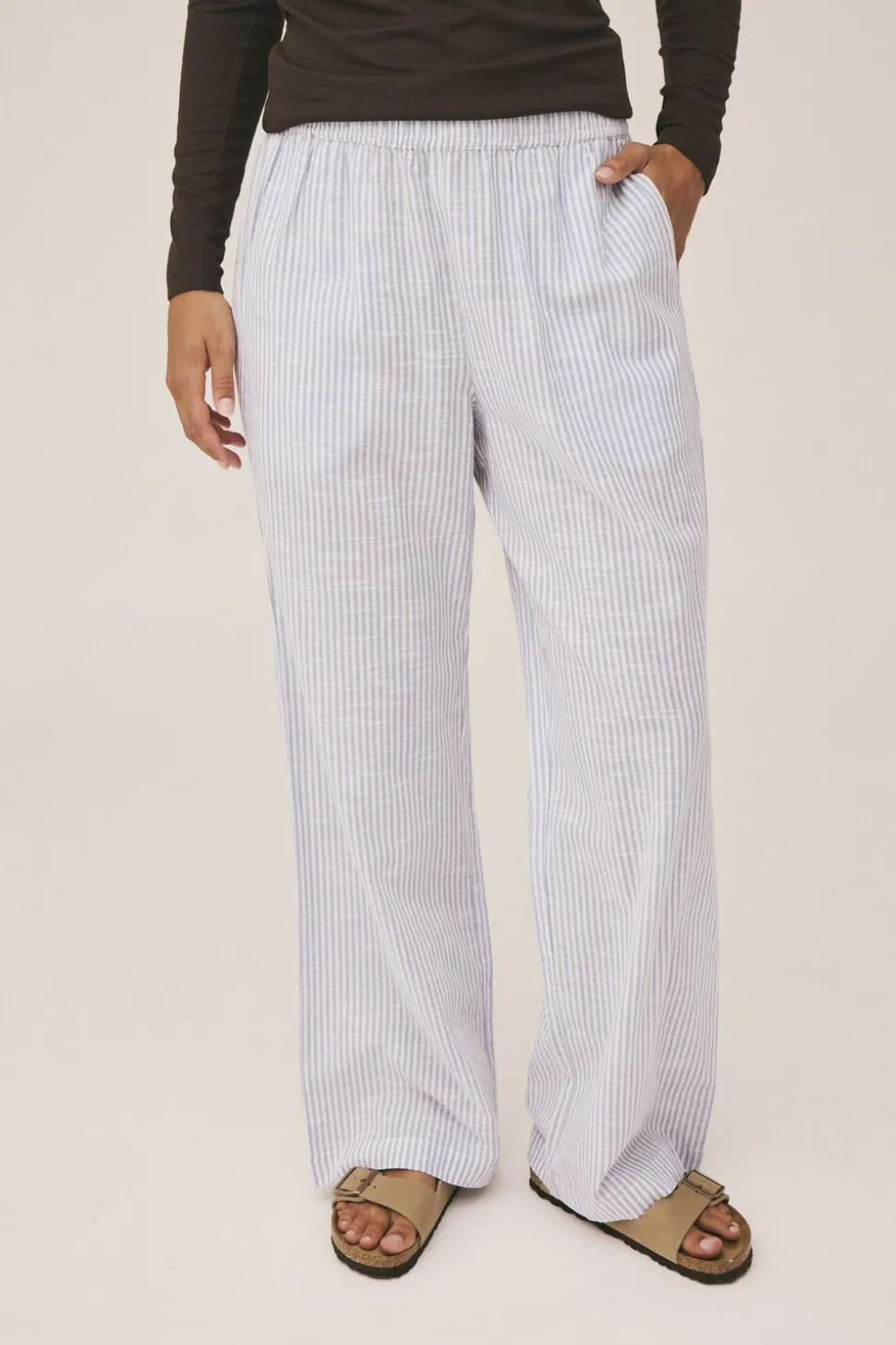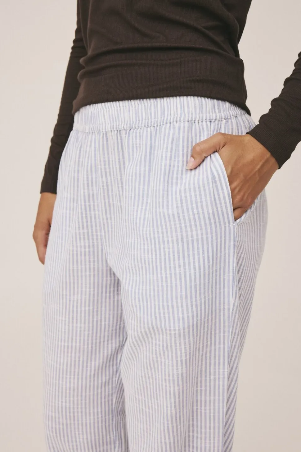 Natbukser fra Magasin du Nord Collection i den blødeste kvalitet af 100% økologisk bomuld med GOTS-certificering. Bukserne er enkle i modellen med et stribet mønster, sidelommer, elastik i taljen samt en lige pasform. Et par skønne natbukser i den lækreste kvalitet.