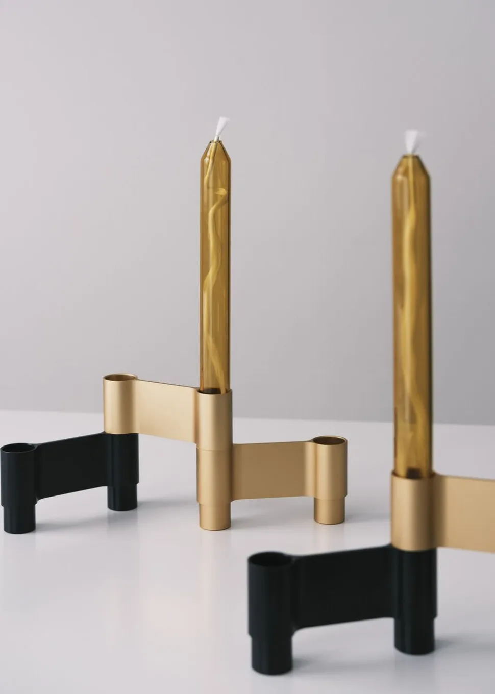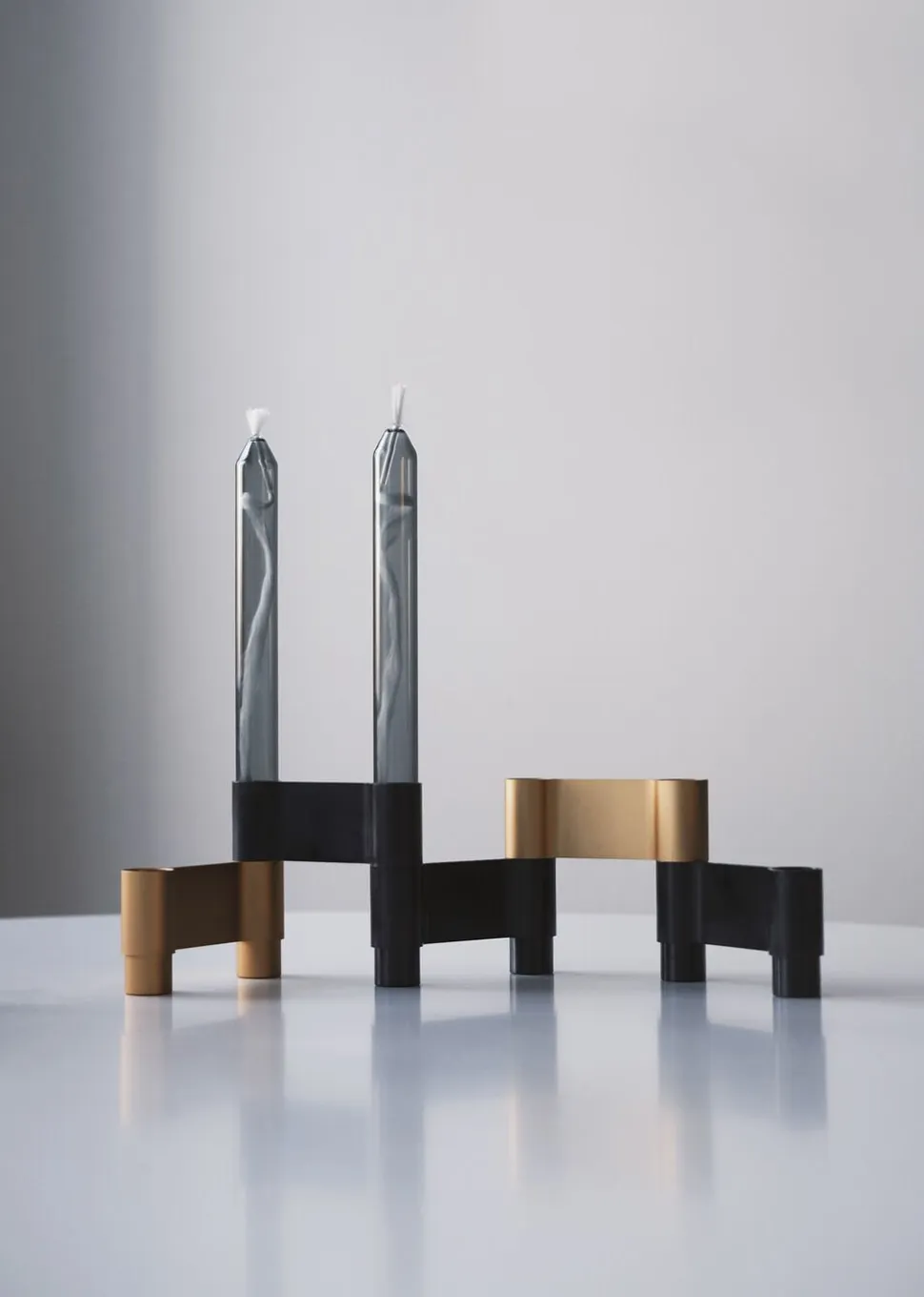 Serien af LINK lysestager er en kollektion af modulære stager, der kan stå enkeltvis eller sættes sammen til en større stage. Lysestagerne er lavet af aluminium og denne variant er i farven sort. EN SKULPTUREL LYSESTAGELINK stagen fås her i sort aluminium, og har et stilrent og enkelt udtryk. Selve stagen er 4 cm høj og kan derfor sagtens bruges på spisebordet, du kan nemt justere bredden og volumen på lysetstagen ved at flytte på modulerne. Med den skulpturelle form står den også flot i sig selv, helt alene som enkelt LINK eller sammensat af flere moduler. INDRET MED METALLER Forsøg dig frem i indretningen med metaller. Materialet aluminium er et stilrent og smagfuldt materiale, der kan kombineres med mange andre objekter. Prøv dig frem og skab et stilleben med LINK stagen kombineret med lidt loppefund eller en glasvase, f.eks Standing bubble der med sin runde form vil bløde det rene udtryk lidt op. Med LINK stagen kan du skabe dit helt eget udtryk – modulerne sættes nemt sammen og man kan derfor også nemt ændre udtrykket når behovet for fornyelse melder sig. Man kan også sætte den sorte stage sammen med modulerne af messing eller sølv. Stagen findes i 4 forskellige anodiseringer – sort, mat guld, mat sølv og blank sølv.PAKKEN INDEHOLDERDu får 3 LINKS moduler pr pakke, hvilket giver plads til 4 lys. Du kan desværre ikke tilkøbe enkle links, da de er pakket i sæt af 3.MÅLStagen har standardmål og passer derfor eksempelvis til det klassiske kronelys. Du kan også bruges vores nye farvede glaslys.FARVE: Sort HØJDE: 40 MMLÆNGDE: 110 MMDIAMETER på røret: 23 MMVÆGT: 0,375 KG LINK kommer i en diskret papæske så de let kan pakkes og sendes, der er 3 moduler pr. pakke. Lysestagen er lavet af overfladebehandlet aluminium. Behandlingen beskytter metallet mod rust og UV stråler, lysestagen vil derfor beholde sin smukke glans og grå farve over tid.Studio About er et dansk designstudio og alle produkter er designet af arkitekt Mikkel Lang Mikkelsen.