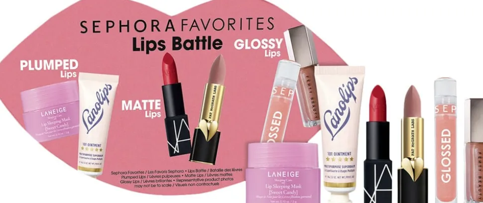 Baseret på følgende produkters priser, sælges separat hos Sephora: Lip Sleeping Mask Sweet Candy 20G – LANEIGE, 101 Salve 15G – LANOLIPS