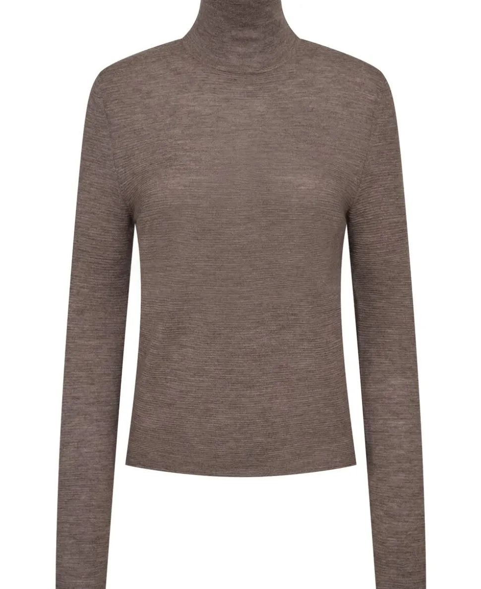 Høj hals, ærmer i fuld længde, tilpasset, omvendt vandret rib, ribkanter, 18 GG 1 PLY Fine Strnit