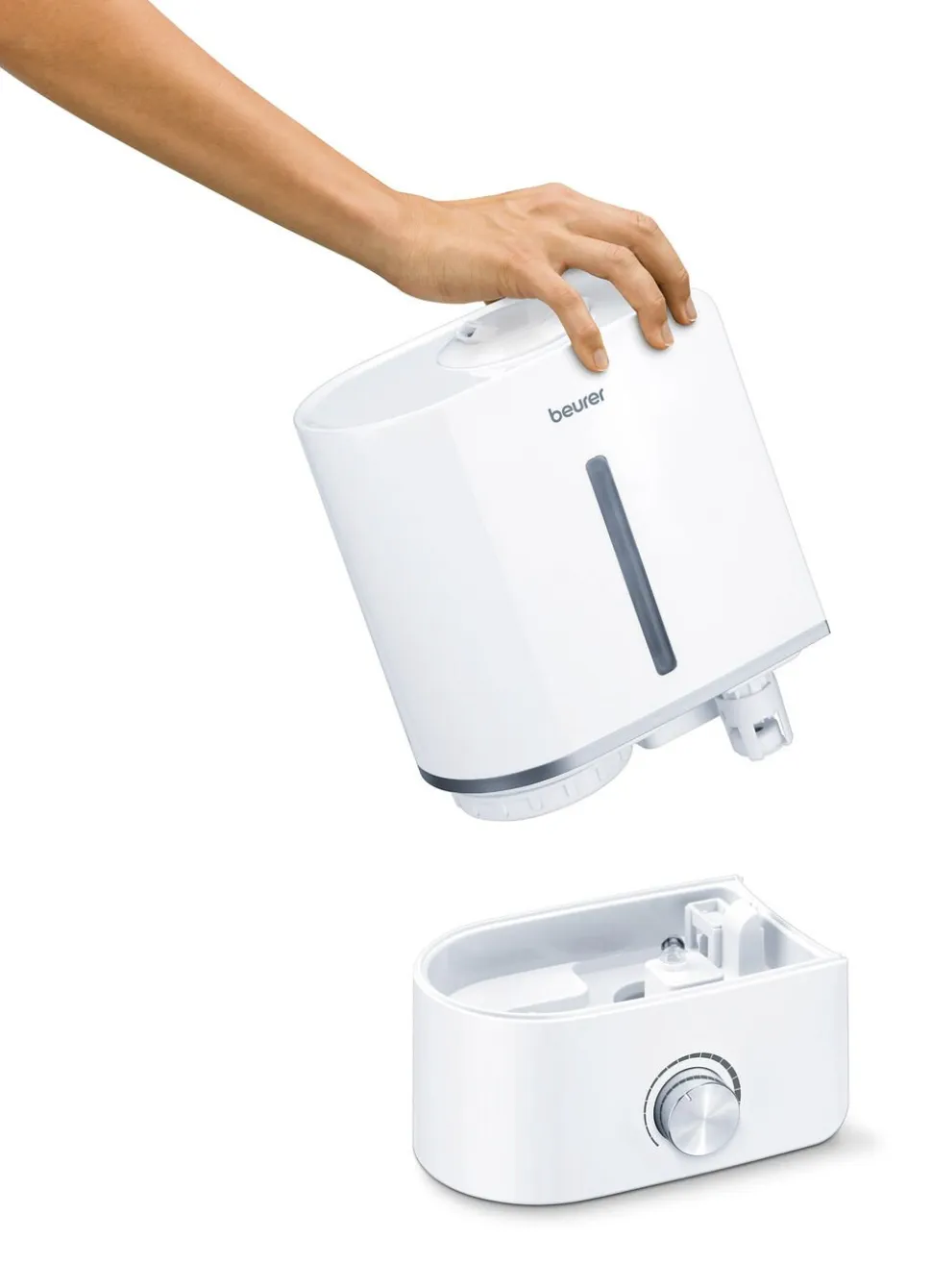 Luftbefugteren bruger mikrofin ultralydsforstøvning, der både er energibesparende og meget lydsvagt – og så forstøver den op til 300 ml i timen. Vandtanken er aftagelig og kan indeholde op til 4 L vand. Vandniveauet ses visuelt på tanken. Luftbefugteren slukker af sig selv, når vandtanken er tom.