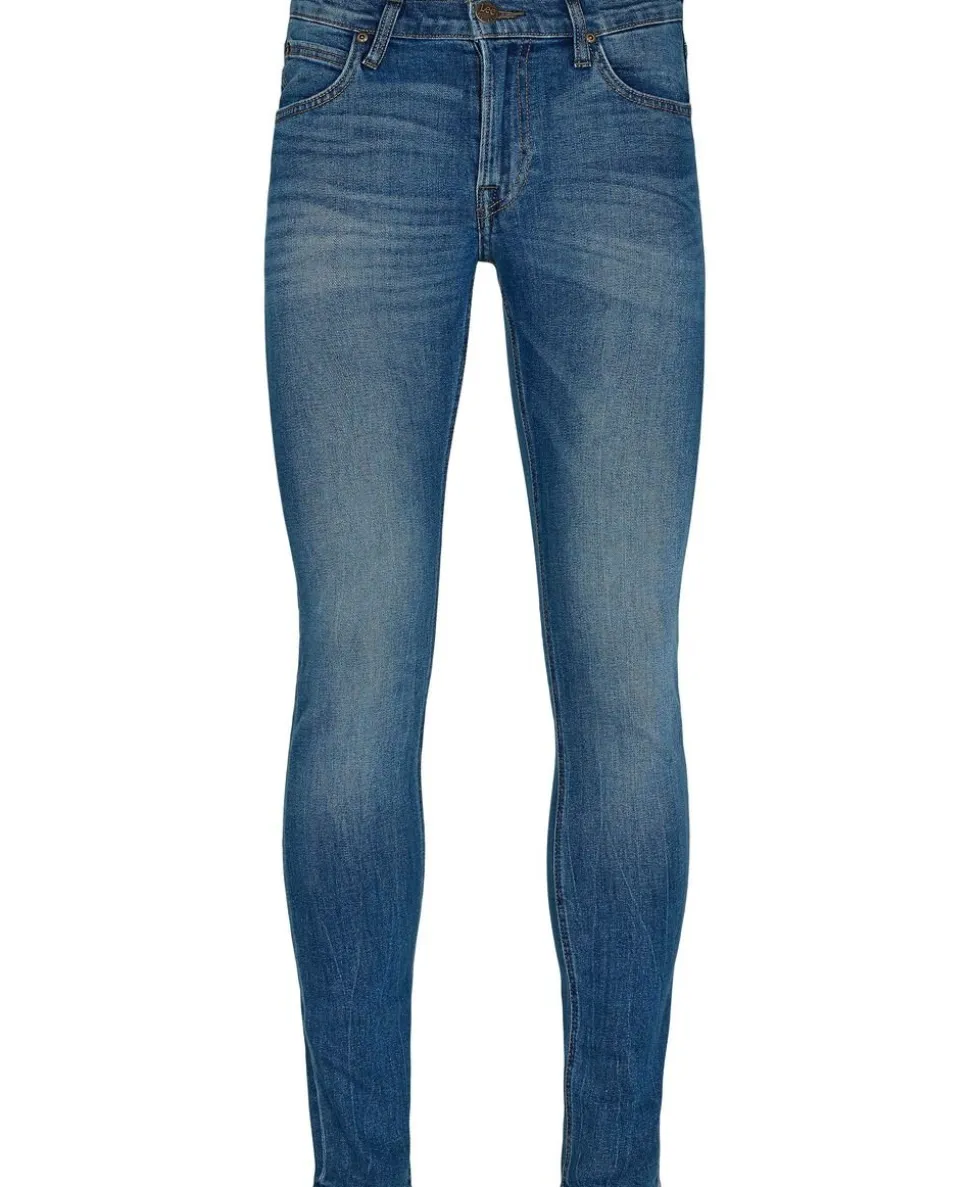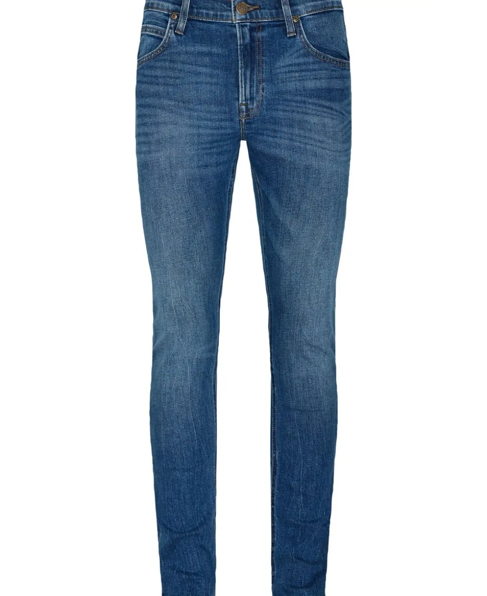 Luke modellen er en slim fit jeans. Luke er cool og moderne og har en mellemhøj talje og lynlås i gylpen. De er skåret smalt over låret og har ligeledes en smal benåbning. Autentisk blå denim med medium stretch fremstillet af genanvendt bomuld. Den mellemblå finish gør denne jeans nem at anvende til alle farver. Sliddet tilføjer en fin kontrast ved lår og knæ. Kontrastsyningerne har en varm gylden farve, der komplementerer den blå denim, mens knapperne og nitterne glimter i en fin messingfarve. Klassisk stil med fem lommer.