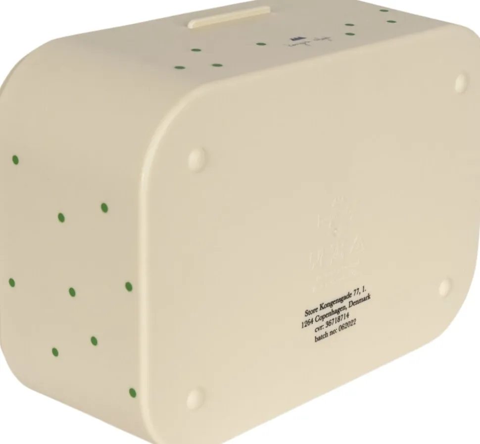 Silikone og polypropylen (PP). Låg: Tåler opvaskemaskine til 100°C. Tåler mikroovn. Temperatursikker: -40°C til 230°C. Æske, skillevæg: Tåler opvaskemaskine. Tåler mikroovn. Ingen opvarmning eller kontakt med fødevarer over 70°C. ADVARSEL! Kvælningsfare – små dele. Ikke egnet til børn under 36 måneder. L17*B12*H8,5 cm. Testet og overholder EU-reglerne vedrørende fødevarekontakt 10/2011 og 1935/2004 og de tyske LFGB §30 og 31. 3 år +.