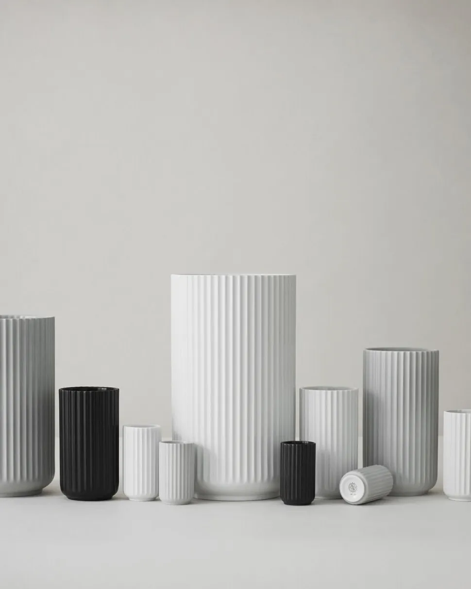 Da Lyngbyvasen oprindeligt blev designet den en stor kontrast til de klassiske og meget traditionstro porcelænsteknikker. De aflange, rillede former og den elegante enkelhed var noget helt nyt. Lyngby Porcelæn relancerede Lyngbyvasen i 2012, og siden da har vasefamilien udviklet sig på både farver og materialer. Husk altid at kigge i bunden af en Lyngbyvase, før du køber den. De originale vaser fra Porcelænsfabrikken Danmark – Lyngby Porcelæn har det velkendte, håndtrykte monogram fra 1961 ”Danmark-Lyngby” i bunden.