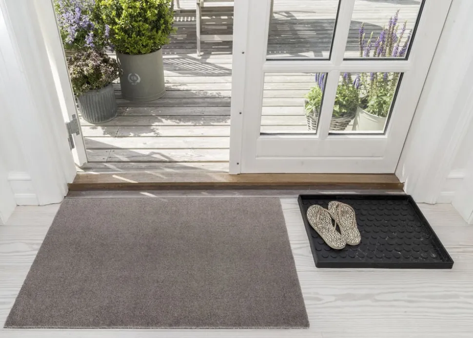 Den tætte lurv i 100% polyamid er hele 0,7 cm. tyk. Måtten/løberen er blød, slidstærk og suger fugt og snavs. Bagsiden er i vinyl, så den ligger stabilt på gulvet. De er praktiske og lette at rengøre. Kan maskinvask ved 30°C og kan støvsuges.