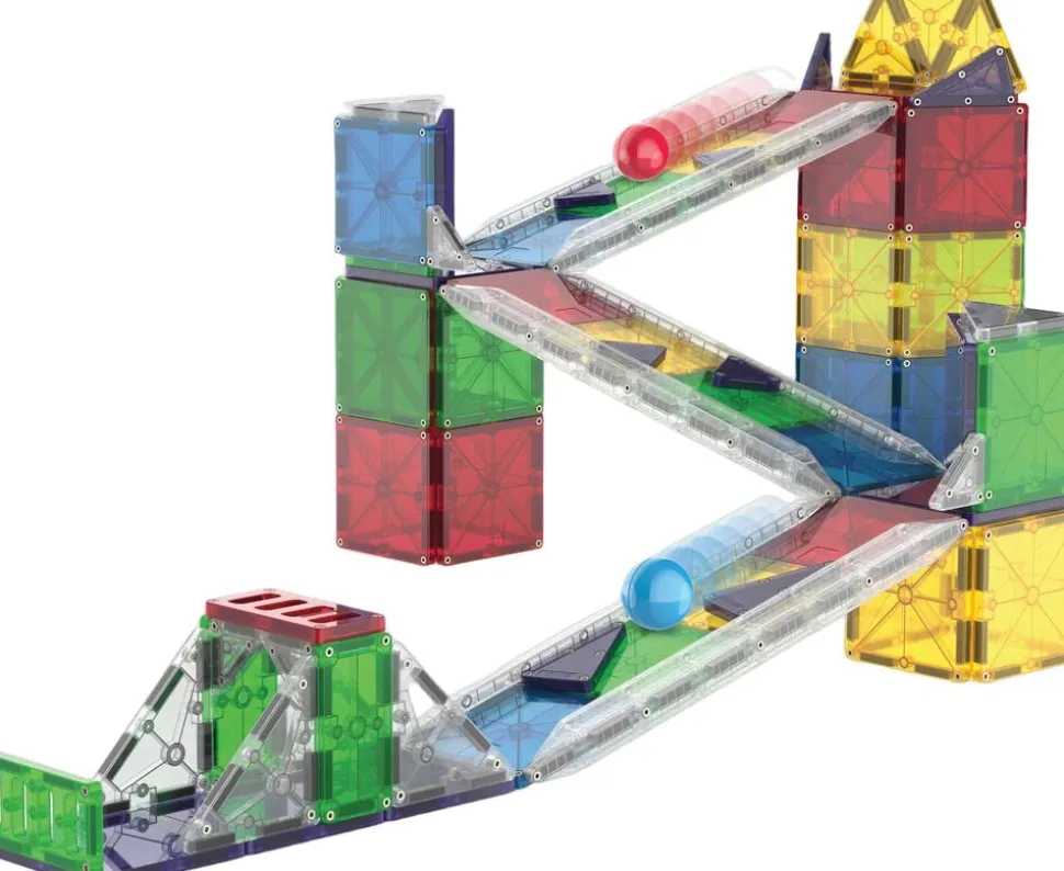 Byg fantasifulde Deluxe kuglebaner med MAGNA-TILES store magnetiske bygge- og legesæt Inkl 2 kugler, baneskinner og microMAGS 90 dele 3 år