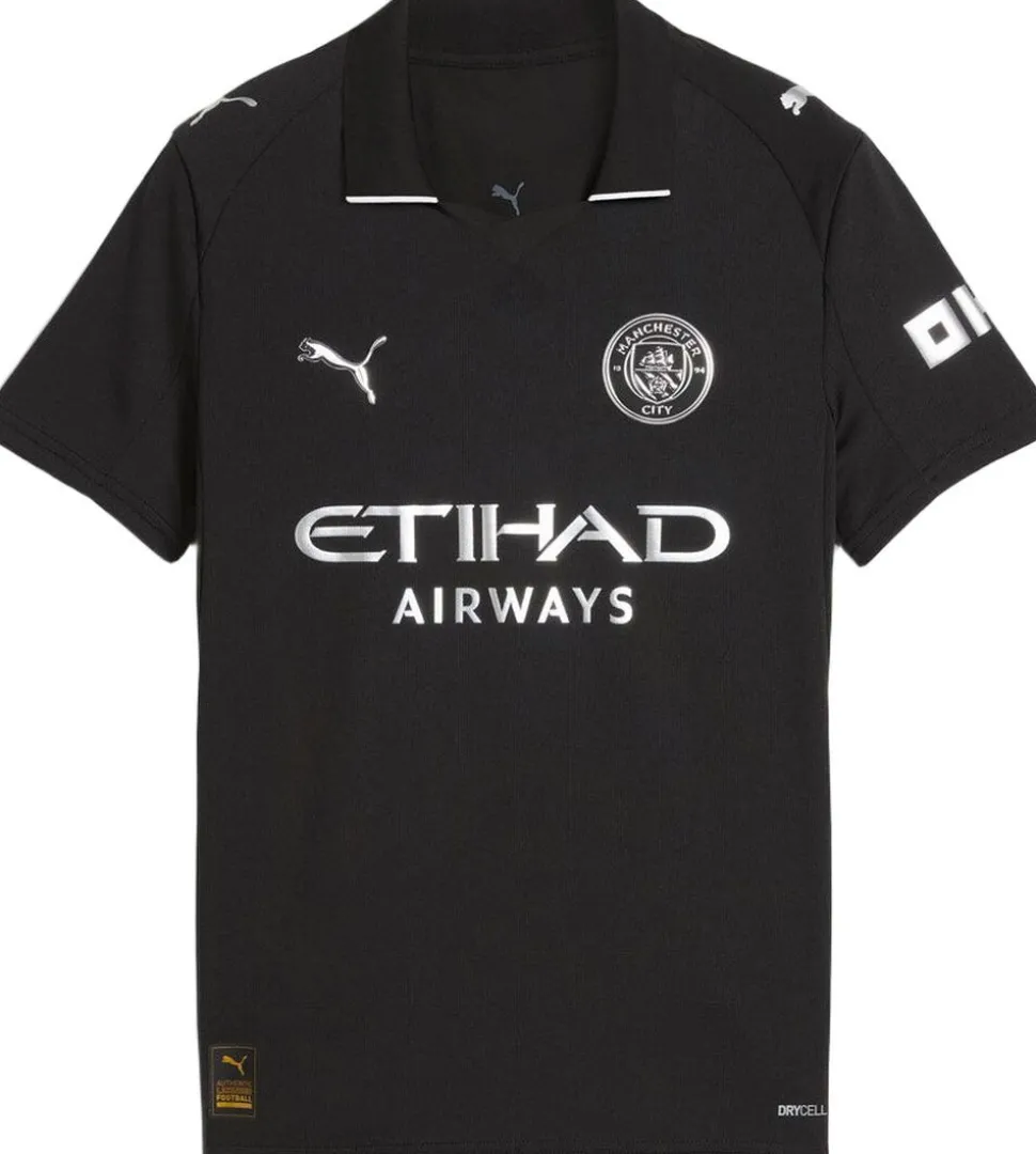 Manchester City 25/26 Udebanetrøje fra PUMA kombinerer ikonisk historie med moderne teknologi. Inspireret af klubbens tidlige kit i sort design med metalliske detaljer, hylder trøjen Citys rødder og innovative ånd. Fremstillet med PUMA dryCELL-teknologi, der effektivt transporterer sved væk og sikrer optimal komfort under intens træning og kamp. Lavet med mindst 95% genanvendte materialer via RE:FIBRE-programmet, der understøtter bæredygtighed. Den lette, åndbare pasform giver fuld bevægelsesfrihed ideel til både fans og aktive. Vælg denne trøje for en stilfuld, funktionel hyldest til Manchester Citys arv og fremtid.