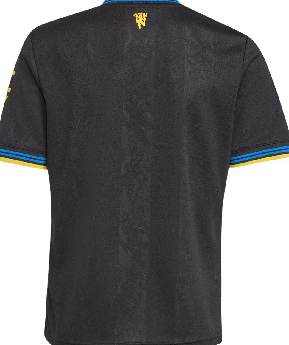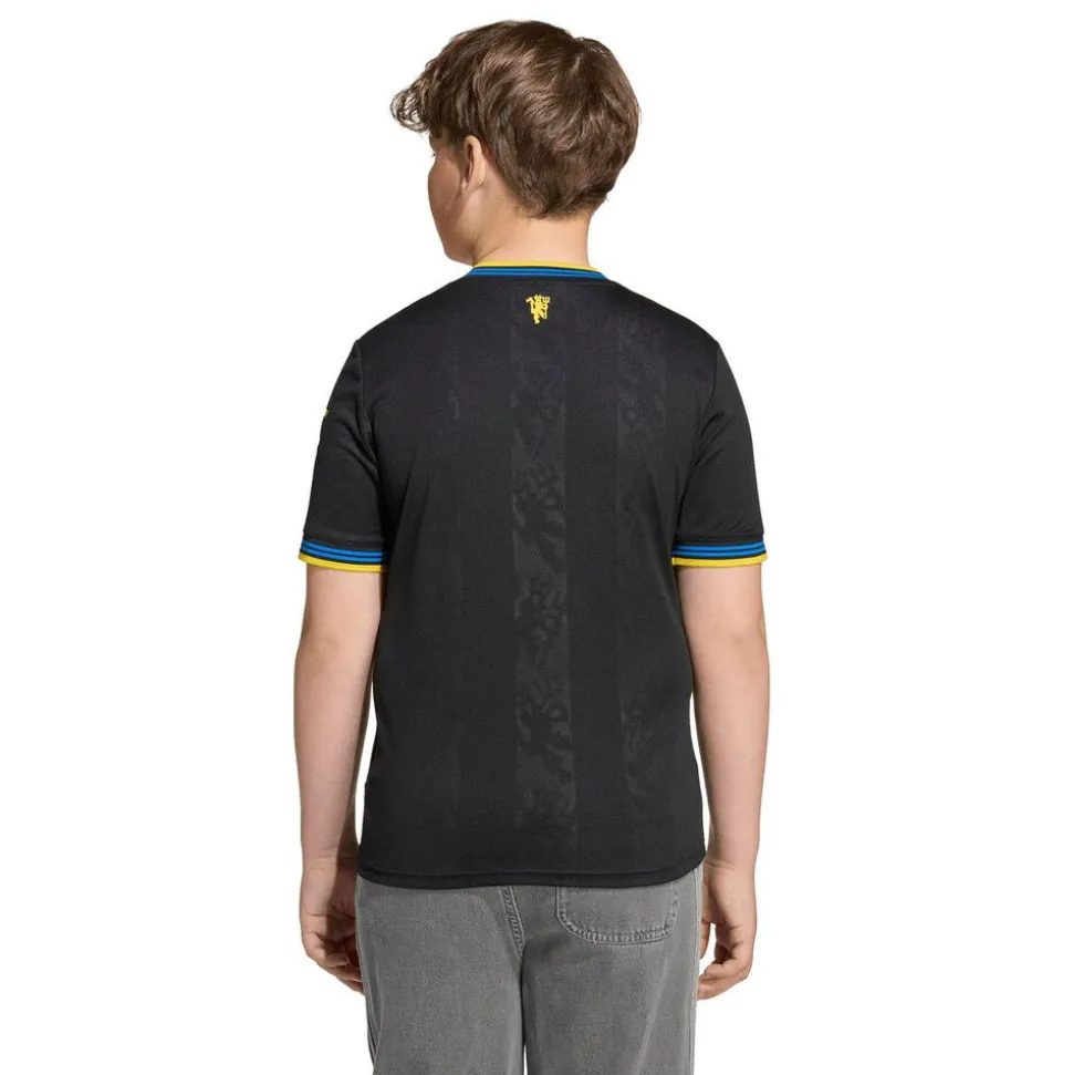 Manchester United 25/26 3. trøje adidas Udtal din stolthed for De Røde Djævle med Manchester Uniteds officielle 25/26 3. trøje fra adidas. Inspireret af de ikoniske 90er-udgaver, kombinerer denne sorte trøje klassisk nostalgia med moderne teknologiske løsninger. Den elegante, sorte base med gule og blå detaljer, adidas Trefoil-logo og det udpregede United-mærke gør dig klar til både stadion og byen. Trøjen er designet til maksimal komfort og præstation med HEAT. RDY-teknologi, gennemtænkede mesh-ventilationspaneler og let, strækkende materiale, der sikrer optimal bevægelighed. Fremstillet i 100% genanvendt polyester, passer den til den moderne, bevidste fan. Slip for varme, hold dig tør og lav dine egne United-minder i en trøje, der hædrer fortid og fremtid i en tidløs, slank pasform.