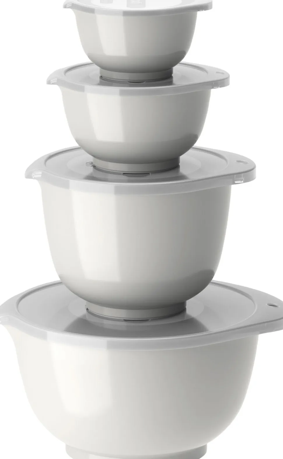 Margrethe røreskålesæt fra Rosti i 4 af de mest anvendte størrelser. Sættet indeholder 0,25 + 0,5 + 1,5 + 3 liter Margrethe-skåle med tilhørende låg. Margrethe-skålen er den klassiske røreskål med det gode greb, den praktiske hældetud og den skridsikre bundring. Den nye version af Margrethe-skålen er fremstillet i Durostima®, et genanvendeligt plastmateriale. Skålen er nu endnu stærkere og mere brudsikker, og med det nye materiale kan den også tåle mikroovn og fryser. Margrethe-skålen er velegnet til såvel tilberedning som servering, og tilkøbes der låg, er røreskålen omdannet til en praktisk opbevaringsskål.