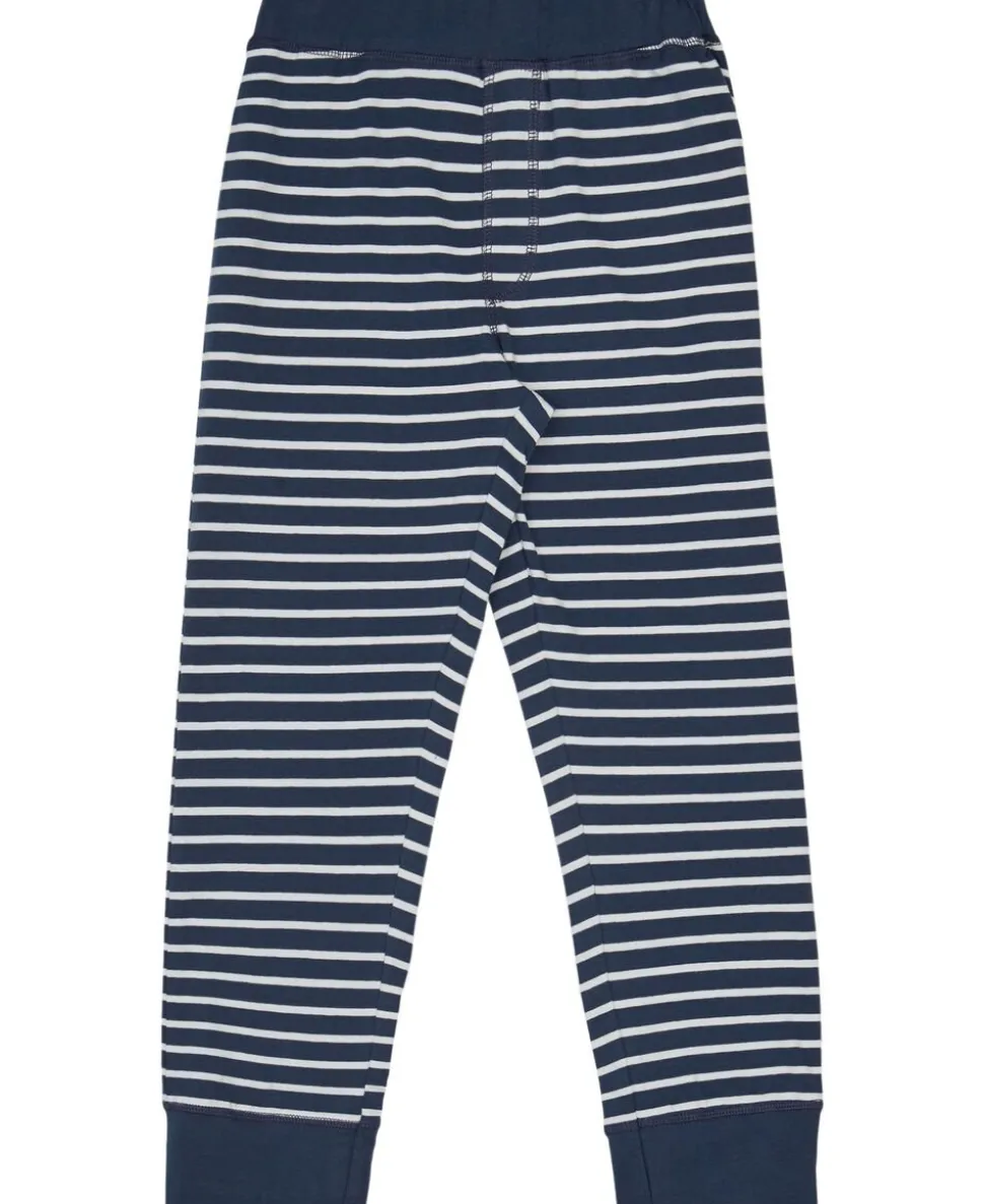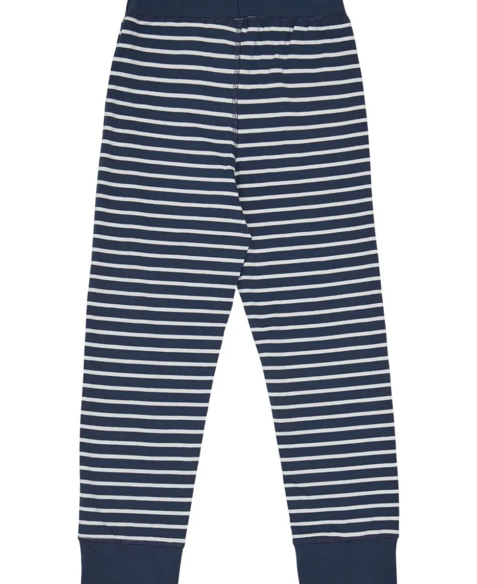 Stribet pyjamas fra BAKITO by Magasin i blød, økologisk GOTS-certificeret bomuldskvalitet. Pyjamassen består af en bluse og et par bukser. Blusen er enkel i modellen med lange ærmer, en rund halsudskæring samt trykknapslukning på fronten. Bukserne er ligeledes enkle i modellen en bred elastik i taljen samt syningsdetaljer på fronten. En rigtig flot pyjamas af den bedste kvalitet. Fås i flere smarte farver.