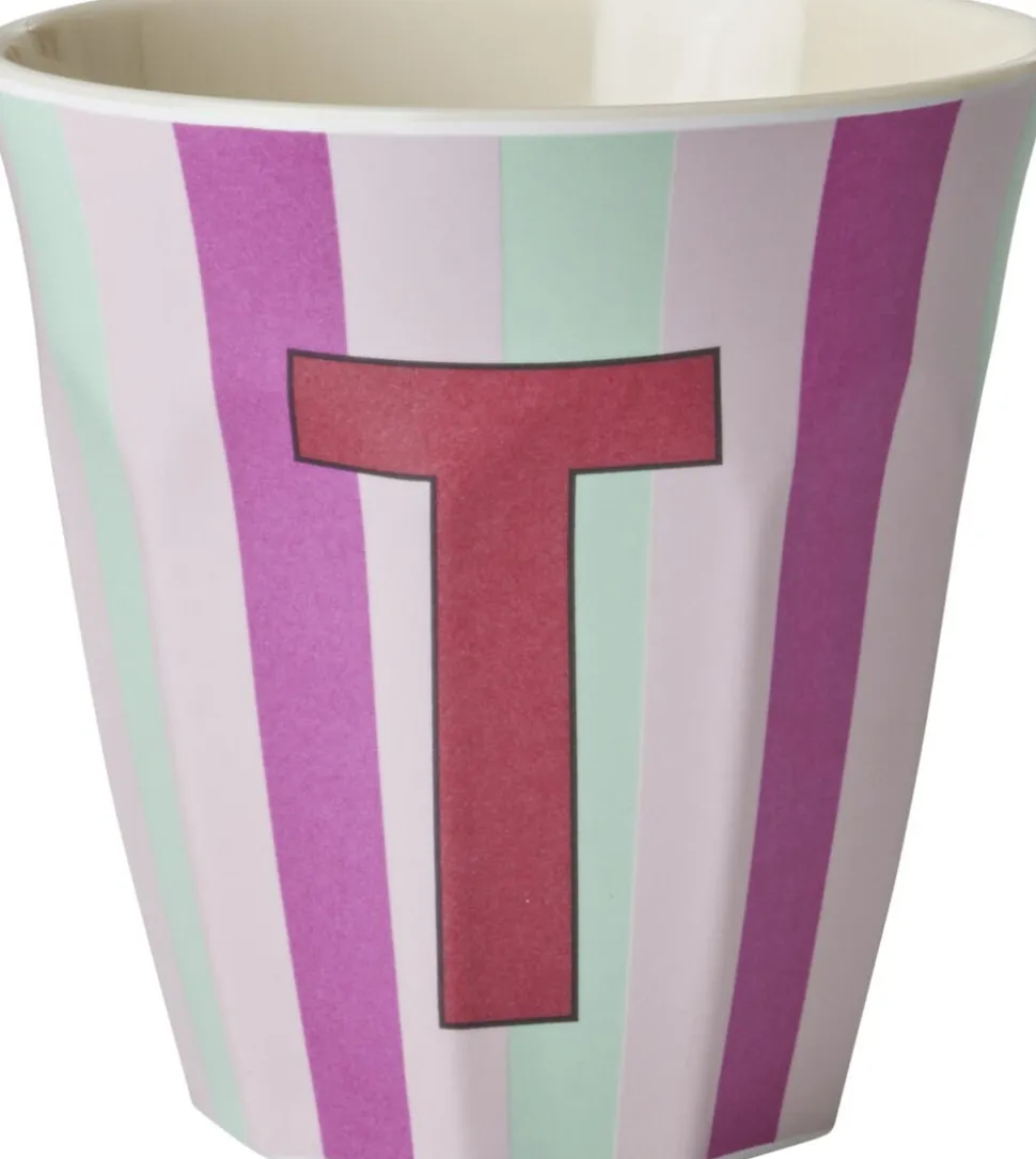 Den skønne melaminkop med bogstaver. Mix og match på kryds og tværs, og skriv lige det budskab, der falder dig ind med de forskellige kopper. Eller gør det enkelt for alle i familien at have deres helt egen personlige kop. Her er bogstavet T. Koppen er en favorit, og det er der god grund til. Brug den til alt muligt – som drikkekrus, til skriveredskaber eller til lækre smoothies. Kun fantasien sætter grænser. Vær opmærksom på, at produkterne ikke er egnet til mikroovn.