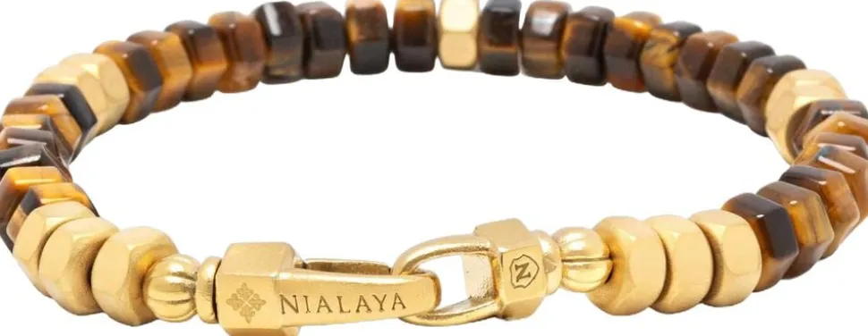 6 mm Tiger Eye Beads, 6 mm rustfrit stålperler med guldplade og lobsterspænde i rustfrit stål med guldplade. Håndlavet i Los Angeles