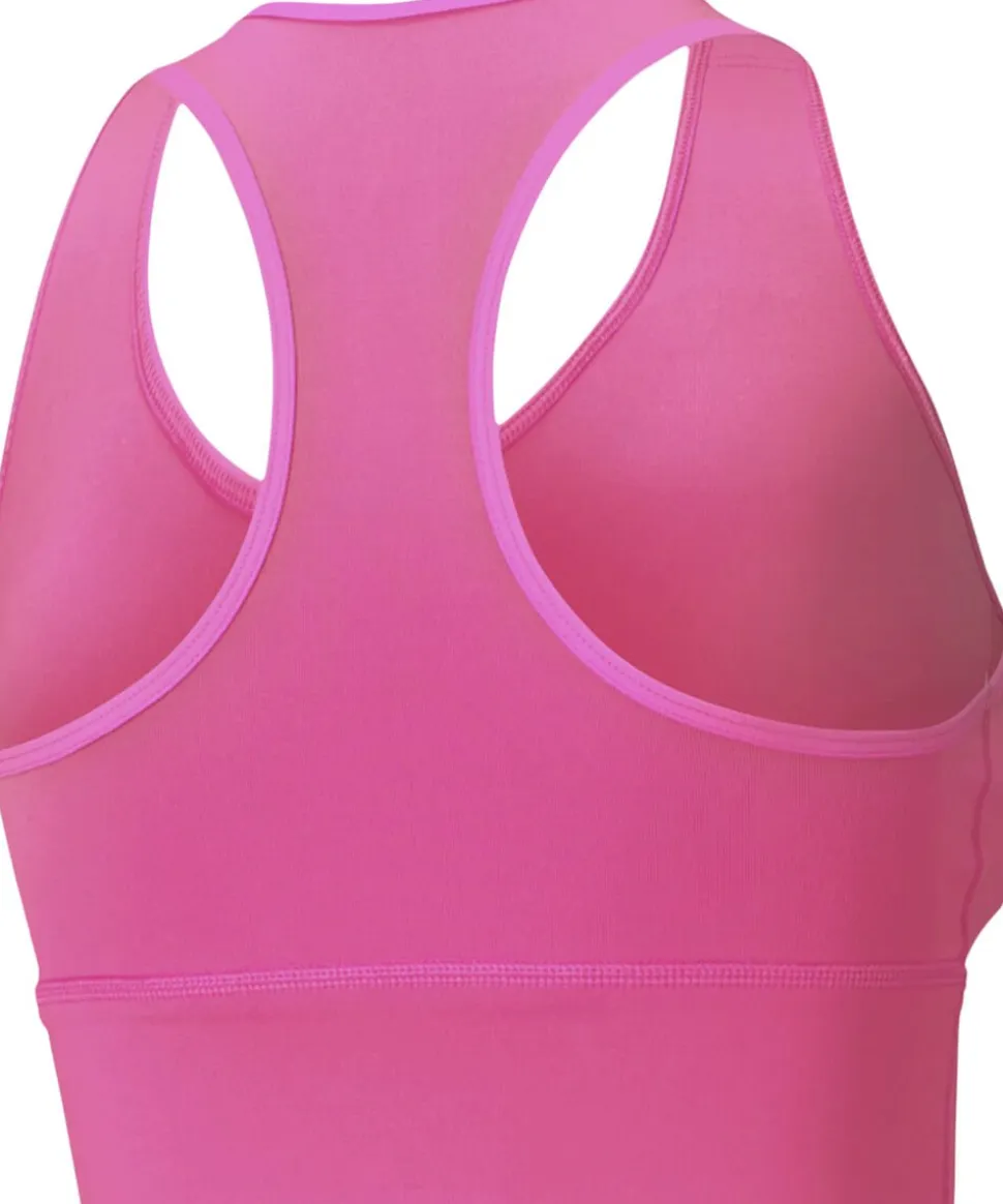 Her leverer Puma tyk selvtillid med deres medium-impact sports BH. Denne atletiske sammensætning byder på en støttende pasform med stabiliserende skulderstropper og en overdreven elastik for ekstra dækning og komfort