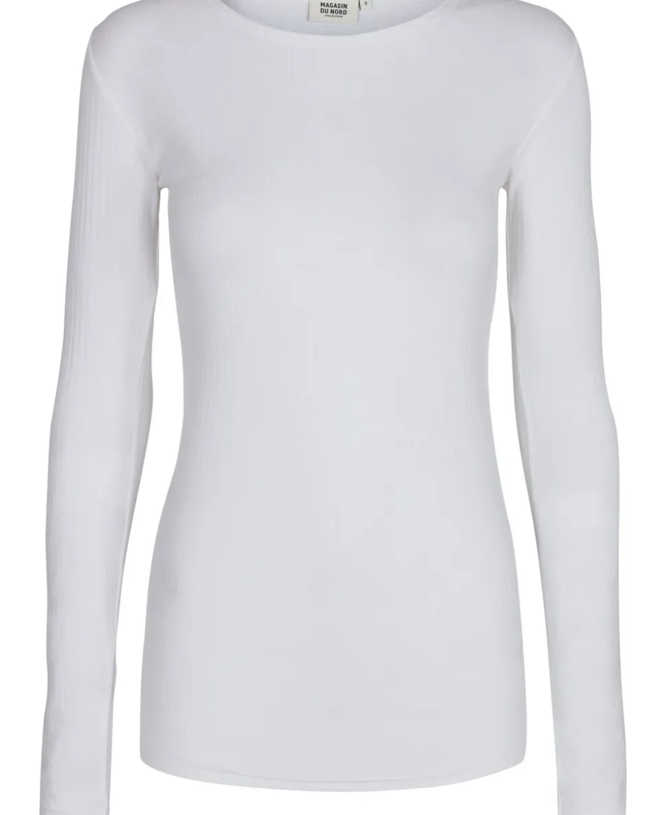 Bluse fra Magasin du Nord Collection i den blødeste kvalitet af 100% økologisk bomuld med GOTS-certificering. Blusen er enkel i modellen med lange ærmer, en smal ribkant langs den runde halsudskæring samt en lækker ribstruktur, der giver blusen en tætsiddende pasform. En skøn bluse i den lækreste kvalitet.