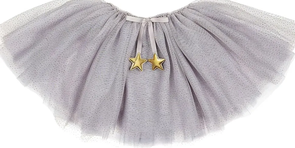 Dette sofistikerede grå tylskørt er i 6 lag stof med elastisk i taljen. Kan bruges både til fest og udklædning evt. ved at sætte et par matchende fevinger og en tryllestav til eller hverdag med et par glitterbriller og en t-shirt. Passer i alderen 3-10 år.