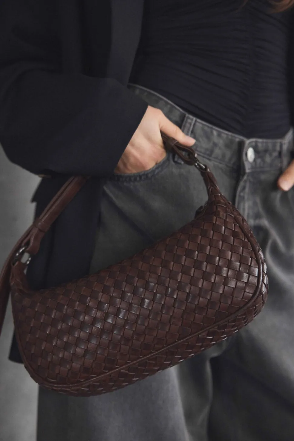 Opdag Mini Muse fra Markberg. En smuk og stilrent taske, der kombinerer håndværk, funktionalitet og tidløs elegance. Fremstillet af 100% blødt kalveskind med fokus på zero waste, er denne taske en ægte designperle. I denne sæson står håndværk og form i centrum med vores fantastiske og iøjnefaldende nye udvalg af it-bags. De mini-weave-stykker, der udgør kollektionen, er alle omhyggeligt håndvævet, hvilket skaber en perfekt balance mellem kunstnerisk udtryk og præcis håndværksmæssig kvalitet. En subtil voksbehandling tilføjer et strejf af vintage sofistikeret, hvilket gør tasken både klassisk og moderne på samme tid. Den elegante taske er designet med både et kort håndtag og en lang crossbody rem i læder, så du kan bære den, lige som det passer dig, til hverdag eller fest. Remmen udskiftes ved at åbne ringene i begge sider, hvorefter læderstroppen kan fjernes og udskiftes. Indvendigt finder du et rummeligt hoved rum, der har plads til alt, du behøver på farten, samt en lille lynlåslomme til værdigenstande. Taskens for er i 100% bomuld, hvilket giver et lækkert og holdbart finish. Med sine mål på 16 cm x 28 cm x 7 cm er denne taske den perfekte kombination af funktionalitet og stil, en ægte must-have, der vil følge dig i mange år fremover.