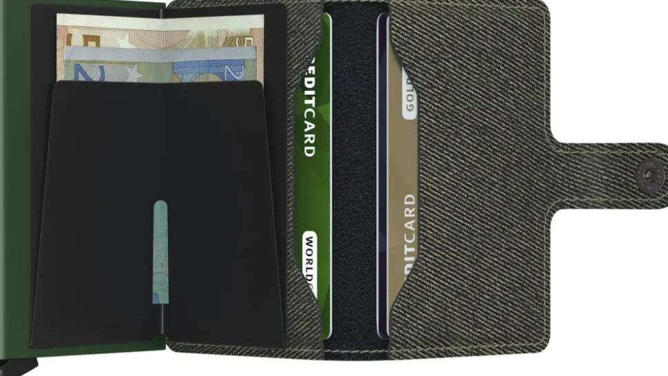 Med udgangspunkt i Secrid’s patenteret cardprotector, har man skabt en miniwallet i lækkert twill læder, der er plads til 4-6 kort i kortholderen og yderligere 4-8 inde i pungen. Den er RFID sikker og rummer alt hvad en pung skal kunne i dagens Danmark.