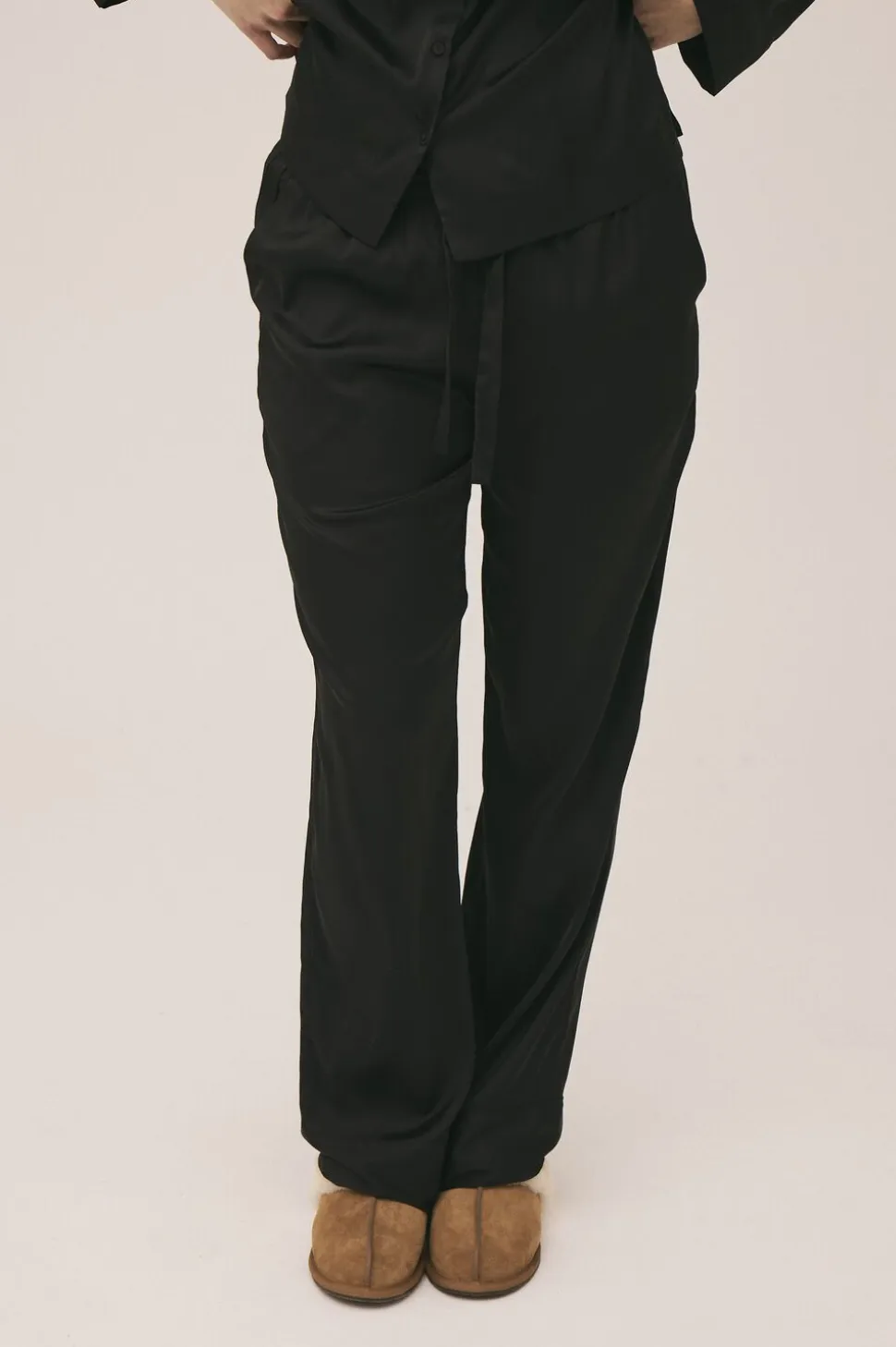 Natbukser fra Magasin du Nord Collection i en blød kvalitet af genanvendt polyester. Bukserne er enkle i modellen med en løs pasform, sidelommer samt brede justerbare snøre og elastik i taljen, der sikrer en behagelig pasform. Et par skønne natbukser i en lækker kvalitet.