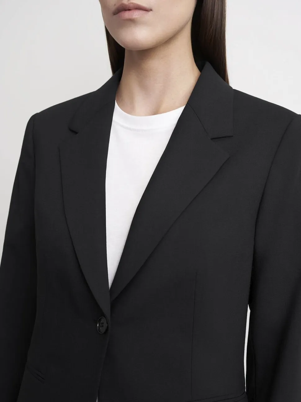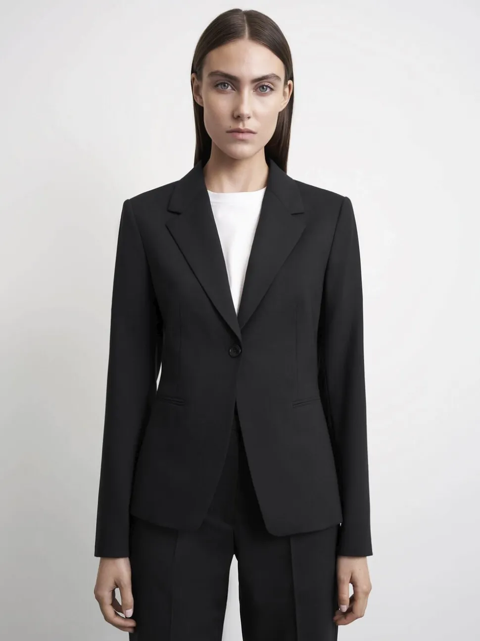 Slim fit habitjakke i ensfarvet vævning.
