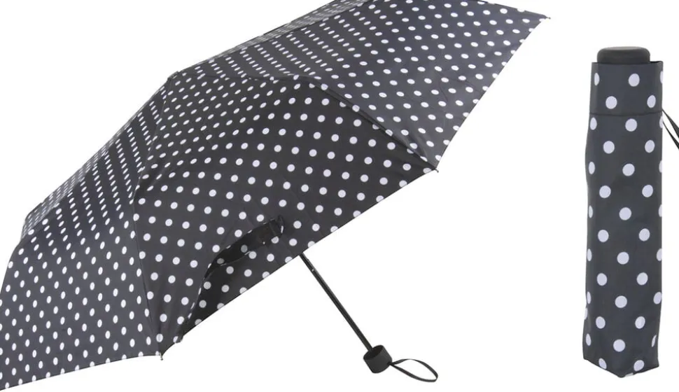 Smart og stilren paraply med prikker. En mindre model som passer perfekt i tasken.