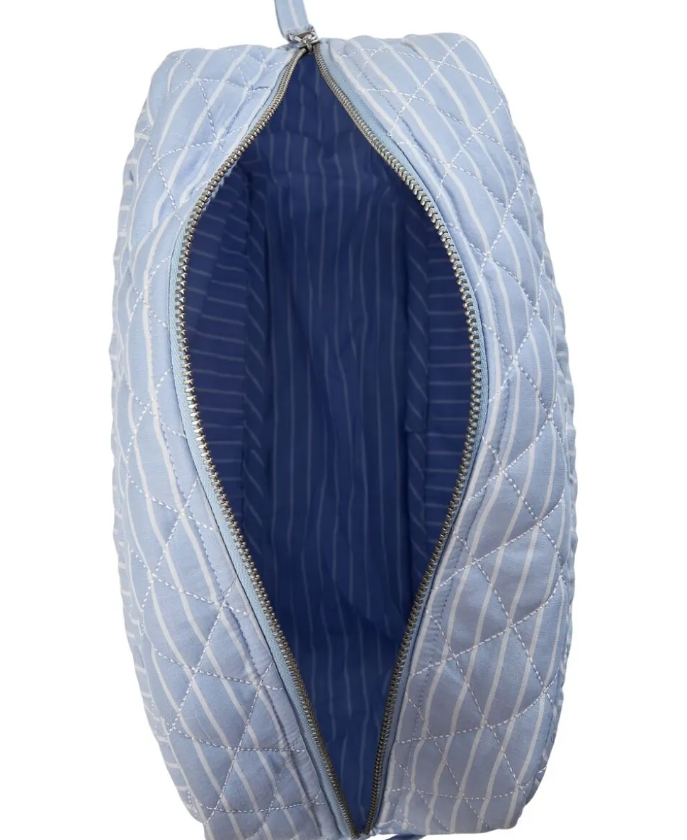 Toilettaske fra Magasin du Nord Collection i den blødeste kvalitet af 80% økologisk bomuld med GOTS-certificering. Toilettasken består af ét stort rum med lynlåslukning samt mindre inderlommer. Derudover har toilettasken fine vatterede syningsdetaljer og et stribet print. En skøn toilettaske i den lækreste kvalitet.