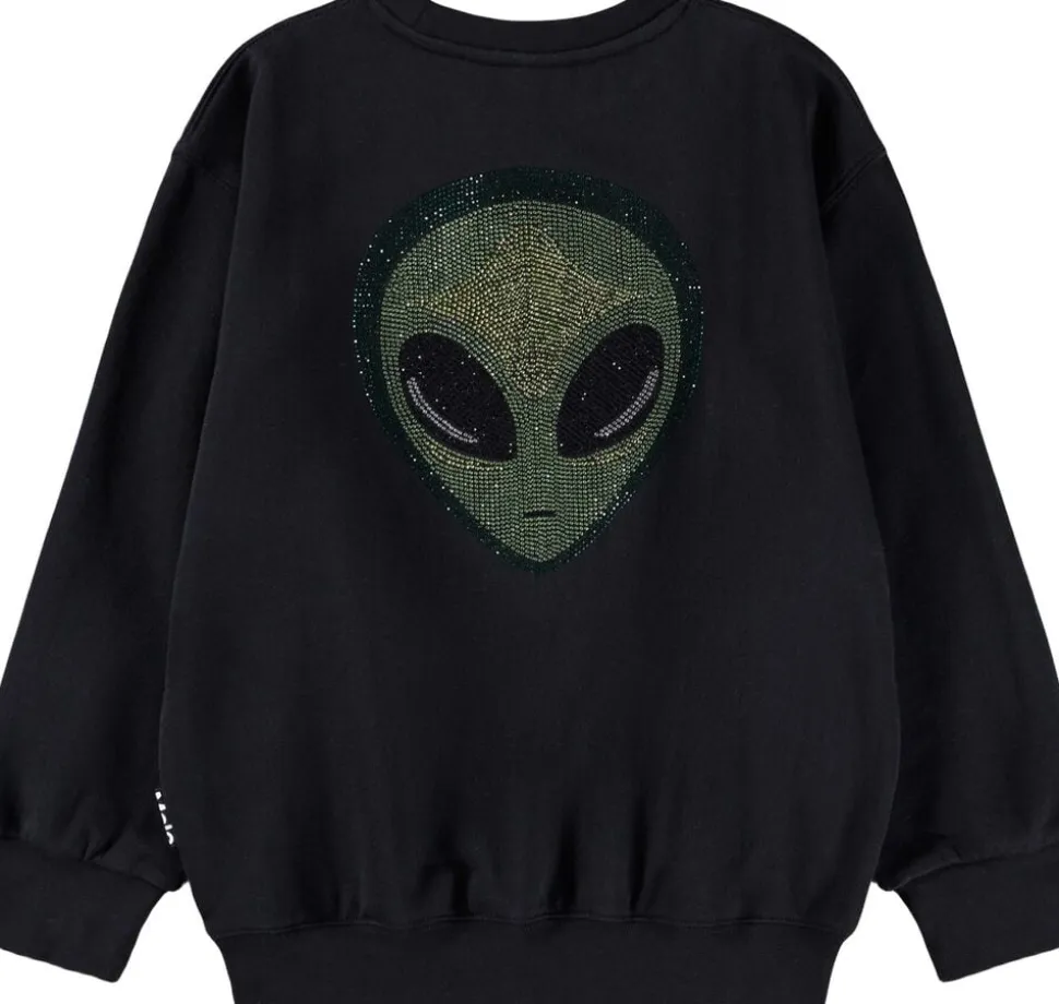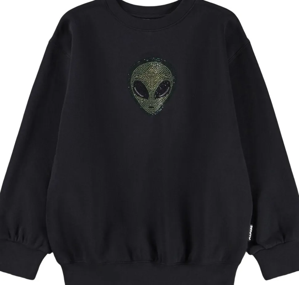 Denne sorte sweatshirt fra Molo er lavet af blødt økologisk bomuld. Sweatshirten har ribkanter ved hals, ærmer og bunden af blusen samt en løs pasform.