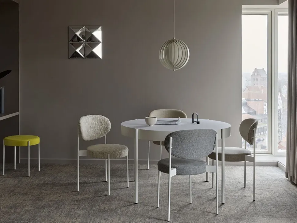 Kuglelampe med lodrette lameller arrangeret som en ventilator til individuel regulering af lyset. Loftsmarkise medfølger