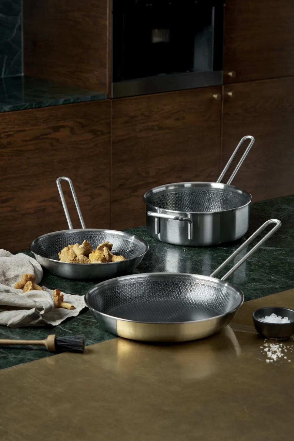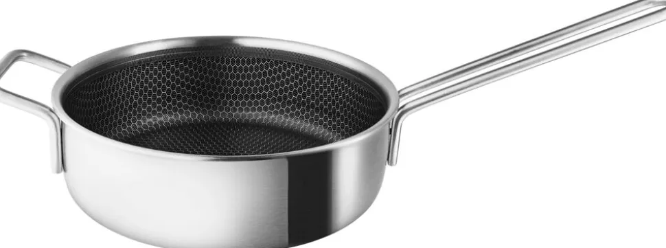 Sauterpande med banebrydende keramisk belægning, der gør panden hårdfør i særklasse. Pandens unikke mosaikmønster i overfladen består af rustfrit stål i toppen og keramisk Slip-let® belægning i bunden og tåler brug af metalredskaber. Belægningen gør det muligt at reducere mængden af fedtstof, giver den perfekte stegeskorpe og gør rengøringen nem. Sauterpandens multi-layer 3 lags teknologi sikrer optimal varmefordeling og en hård yderside modstår slid og brug. Størrelsen på de 24 cm er nem at håndtere, f.eks. til den nemme og hurtige hverdagsmad. Eller til simreretter, der kan passe sig selv. Sauterpanden tåler en tur i ovnen op til 400° C og er velegnet til alle varmekilder, også induktion.