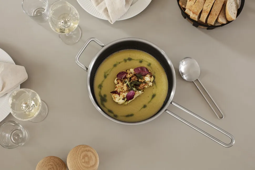 Tåler maskinopvask og rengøring med stålsvamp. Belægning er fri for fluorstoffer. Kan stables.