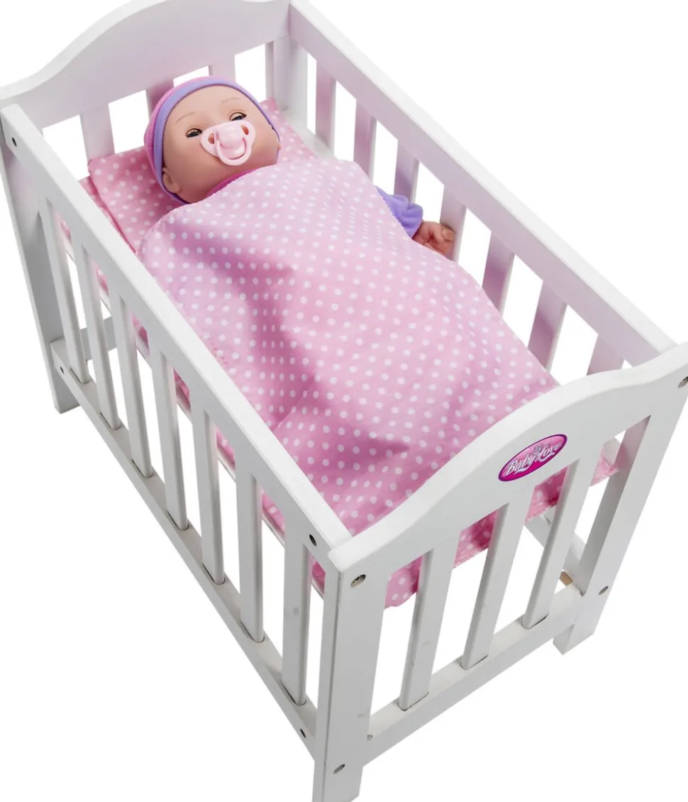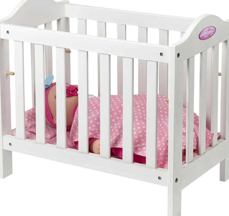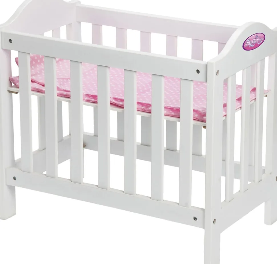 Tremmeseng i træ Med madras. dyne og pude 49x44x30 cm Passer til 30-46 cm dukker Med højdejusterbar bund Uden dukke