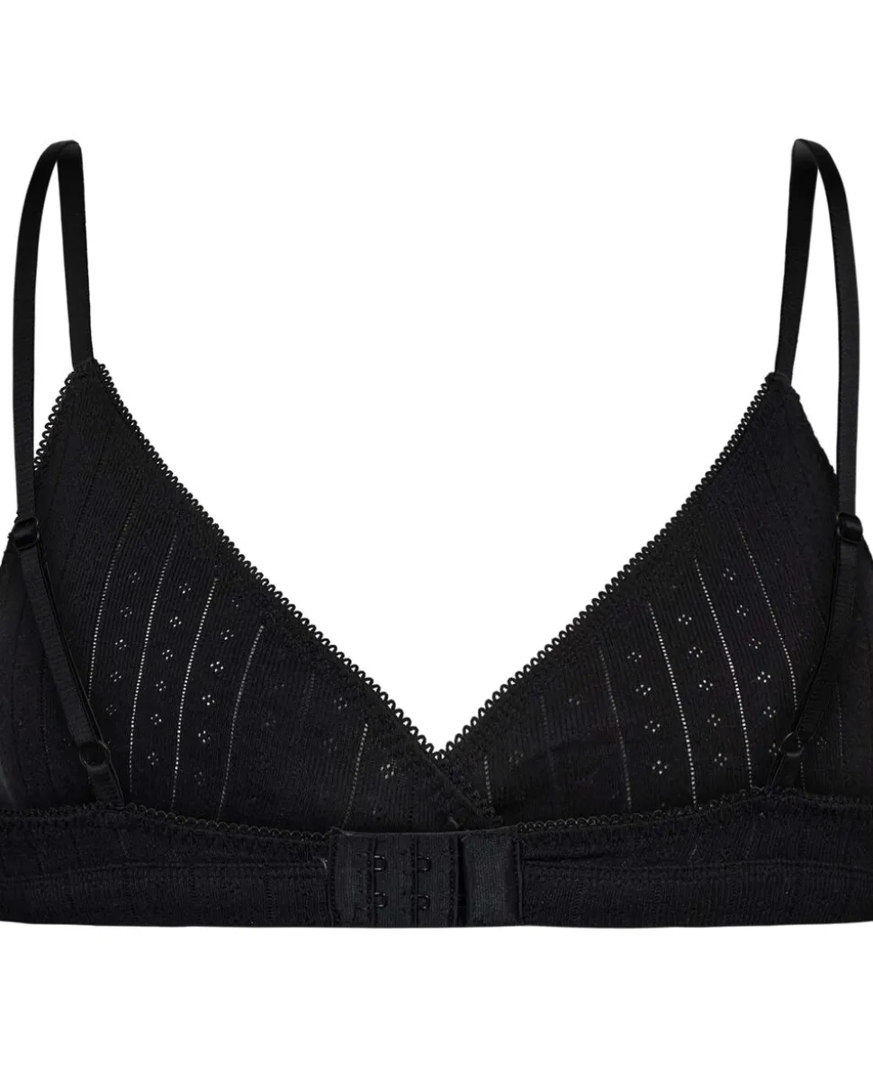 BH fra Magasin du Nord Collection i den blødeste kvalitet af 100% økologisk bomuld med GOTS-certificering. BH’en er enkel i modellen med det fineste hulmønster, smalle skulderstropper, trekantede skåle samt rib og blondekant. En skøn BH i den lækreste kvalitet.