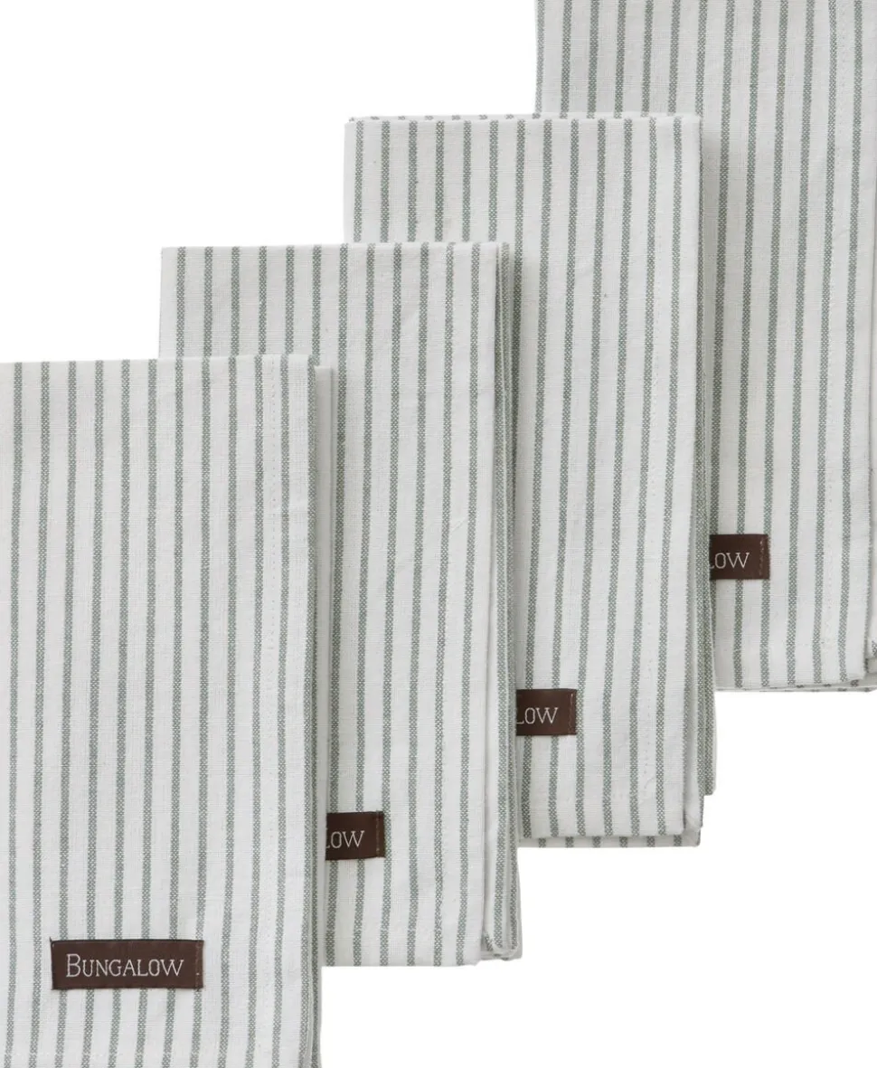 Sæt med 4 stofservietter i et enkelt og dekorativt design fra Bungalow. Tilføj dit bord et personligt præg og skab dit perfekte mix blandt Bungalows mange smukke og funktionelle servietter.