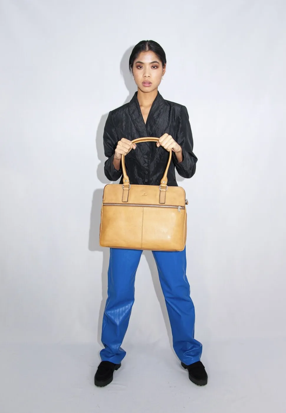 Gerda jobtaske i Napoli Kalveskind. Tasken har to gode hanke og en aftagelig skulderrem, som kan justeres i længden. På fronten er der en stor lynlåslomme. Tasken er delt op i 3 som hver lukkes af en lynlås. Inden i er der god plads, en lynlåslomme, en læderlomme til en mobil samt foret lomme til PC og en tablet. Vi anbefaler Adax protectionsspray.