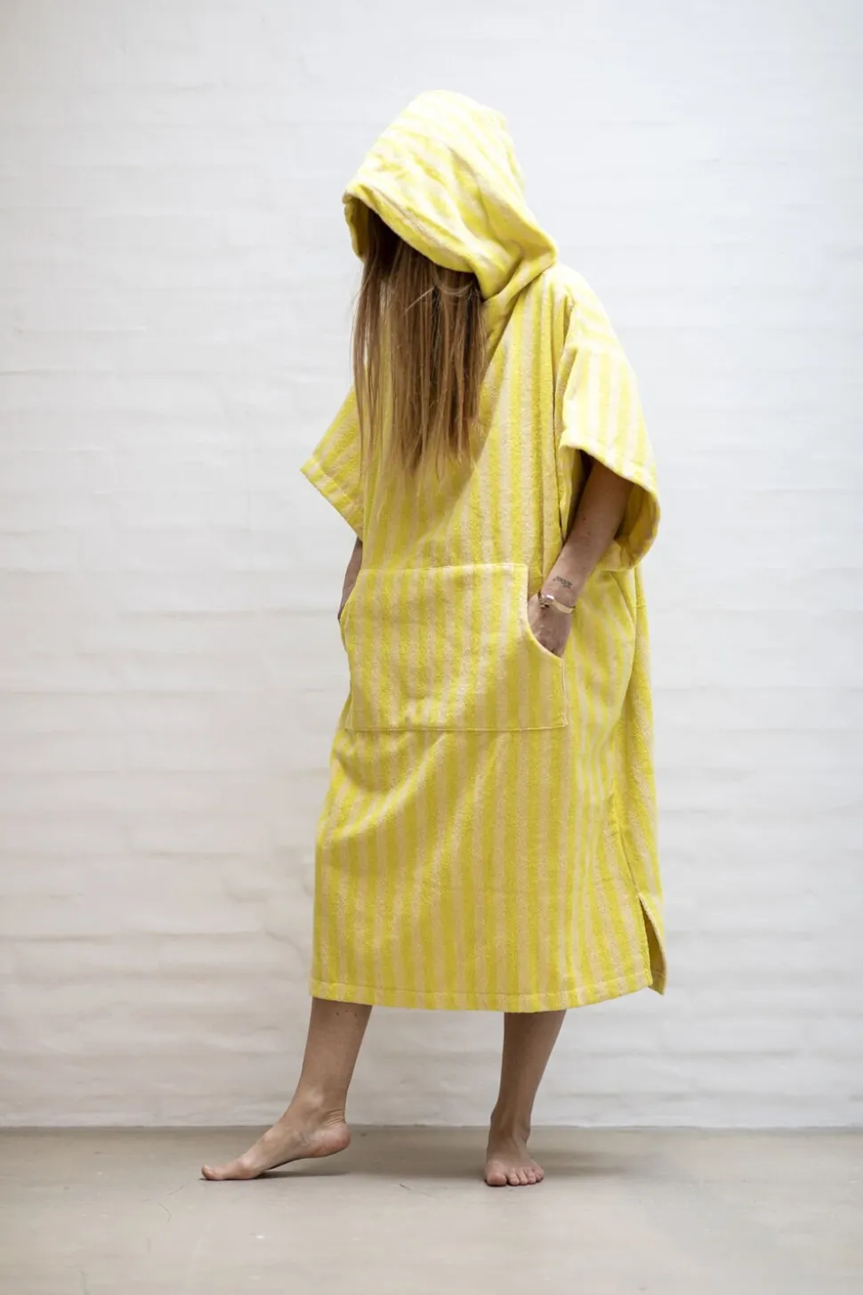 Inspireret af surf-verdenens afslappede vibes er Naram Poncho omhyggeligt fremstillet af 100% kæmmet bomuld og dobbeltvævet i en blød 385-gsm kvalitet. Dette giver høj sugeevne og en chill oplevelse, hver gang du tager den på.Naram Poncho er designet, så du kan skifte dit våde badetøj under den, mens du holder dig tildækket og varm efter f.eks. svømmetræning eller efter en svømmetur på stranden. Den fungerer også nemt som det ultimative hygge-outfit. Bare tag den på og du har det perfekte outfit klar til hvad som helst!Hætten er superpraktisk, når man kommer op af det kolde vand, plus, den store kænguru frontlomme sikrer, at du kan varme dine hænder eller gemme dine væsentlige ting, mens du nyder ultimativ komfort.