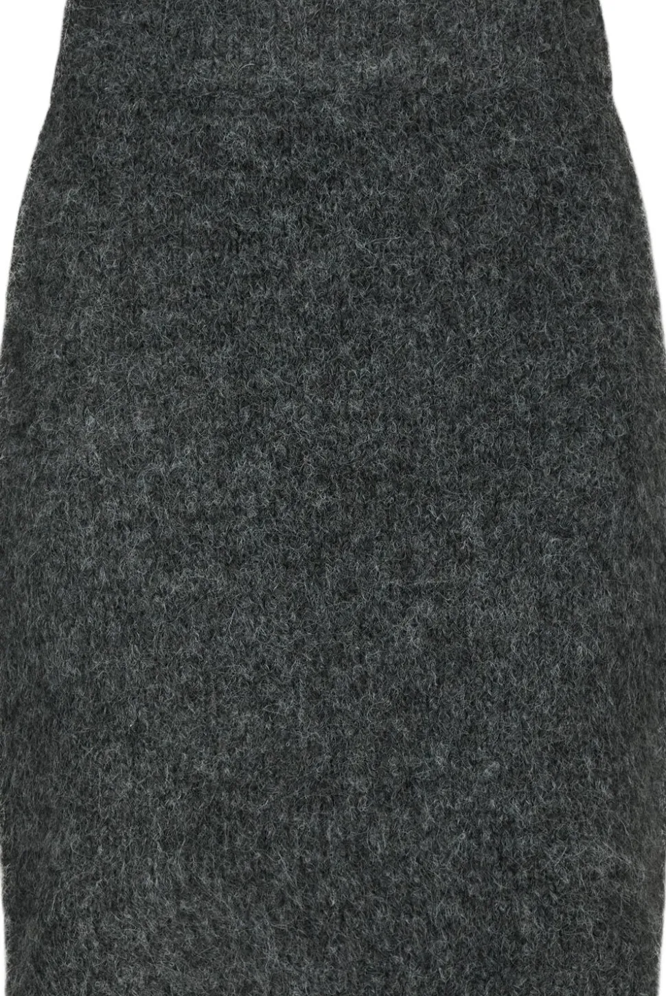 Kort, strikket nederdel med elastik i taljen. Nederdelen er lavet i et blødt, fluffy materiale og indeholder uld. Den har en tætsiddende pasform. Modellen er iført størrelse 36.