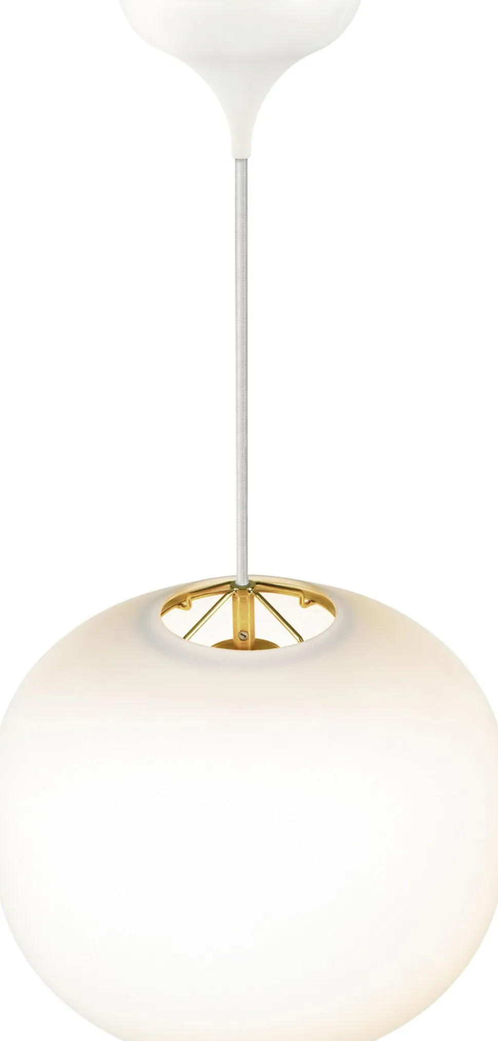 Navone er designet af den danske tegnestue Studio Mavro//Lefèvre by Sofie Lefèvre. Skærmens dominerende form er blød og rund, men den meget subtile buede bund tilføjer en ny interessant dimension, der forvandler lampen til mere end blot en kugle. Messingdetaljerne tilføjer et moderne touch og understreger lampens svævende lethed.