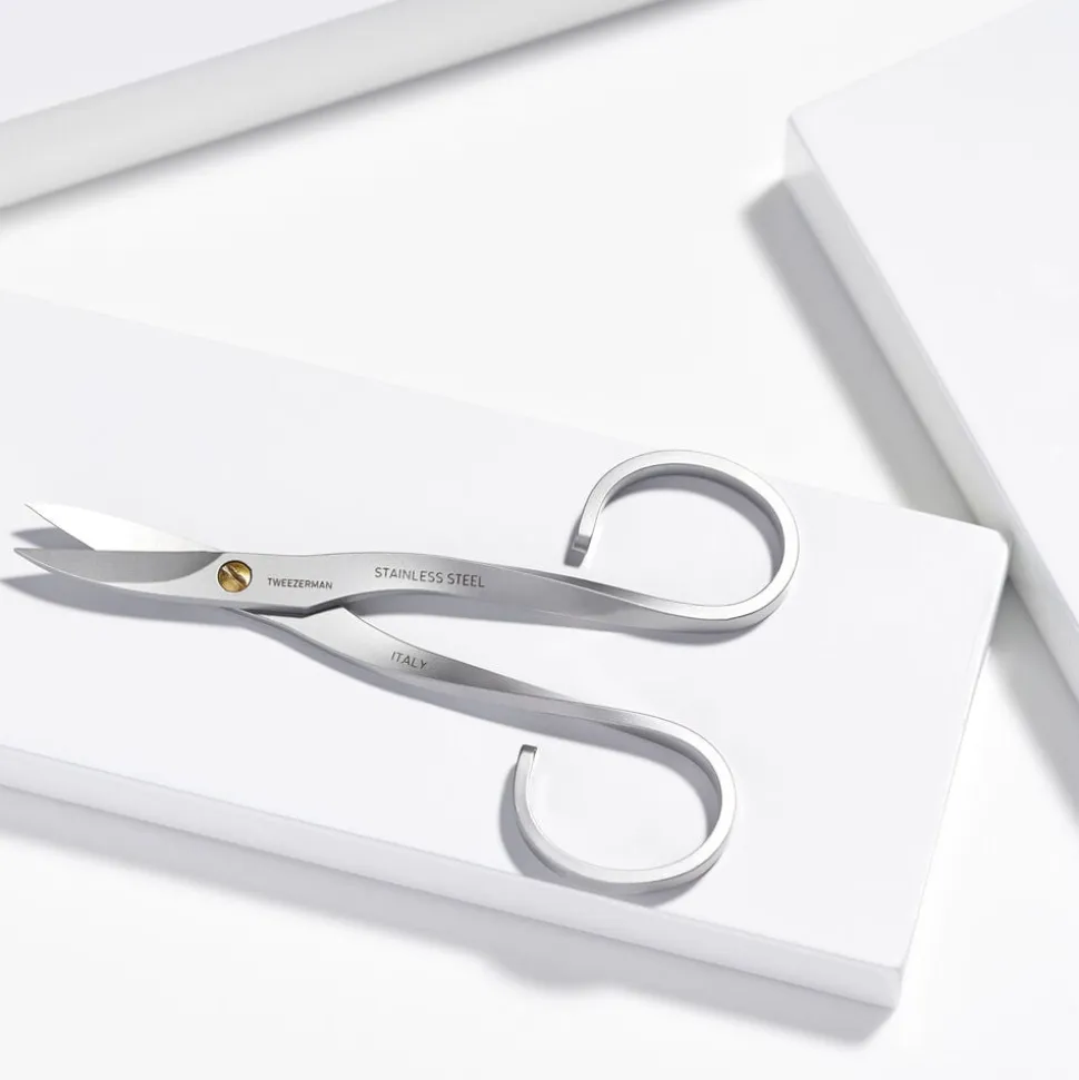 Et elegant design med med ekstra skarpe, tynde spidser og et buet skær, som sikrer en præcis klipning af neglerødder og flossede neglebånd. Rustfrit stål.