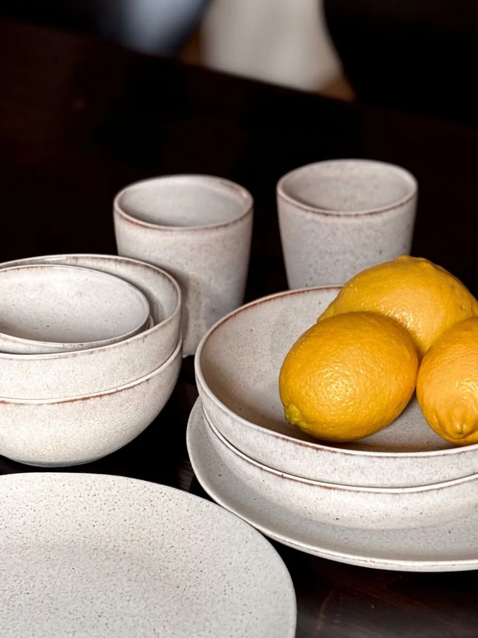NORD SPISESTEL Den nye stentøjsserie er skabt af Magasin du Nord. Stellet har med de organisk former et minimalistisk og nordisk designsprog. Hver enkelt del er håndglaseret og får derved et unikt udtryk ved hver brænding. Det betyder at der kan være mindre variationer i overfladen, såsom prikker og farvevariationer og dette skal ikke ses som fejl men en del af produktets unikke udtryk. Stentøjsstel er fremstillet til at modstå hverdagens brug og tåler opvaskemaskine- og er mikrobølgeovnssikret.