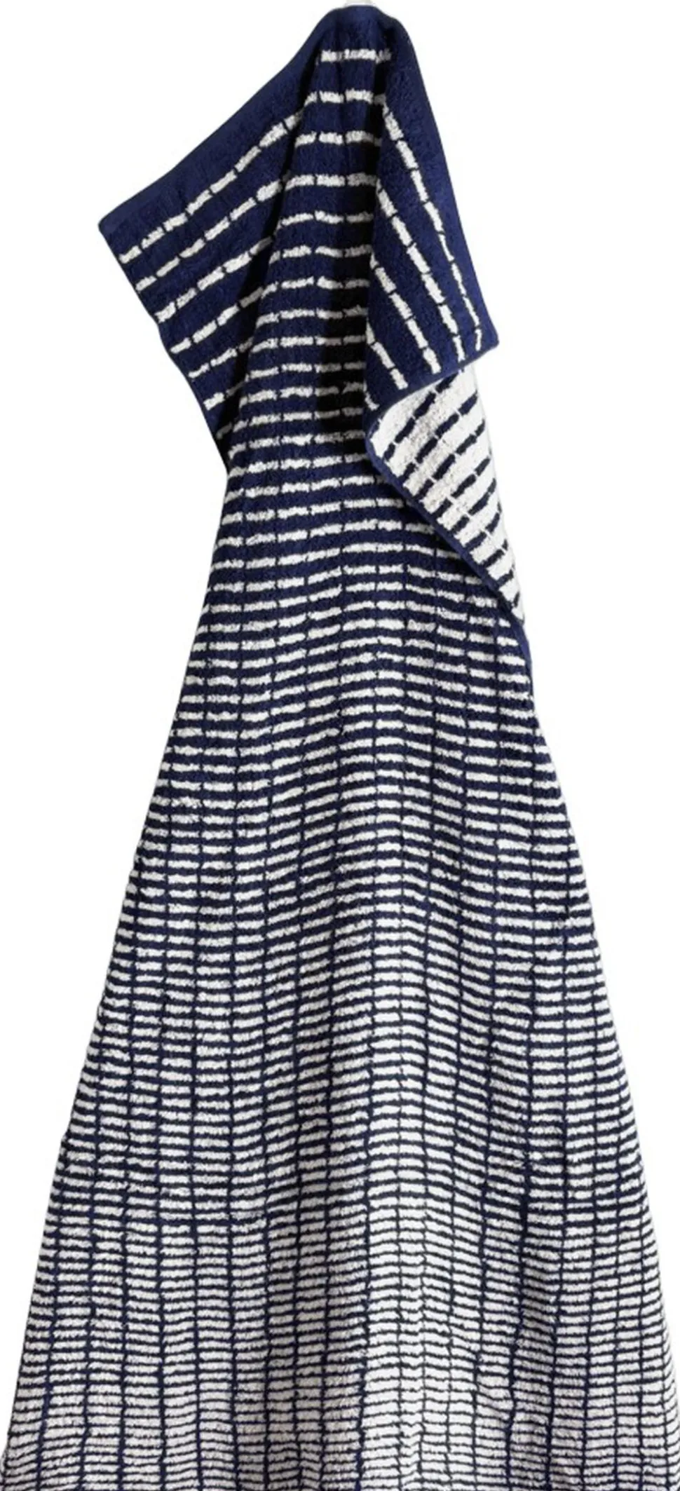 Mærk stemningen af vidunderlig hverdagsluksus på badeværelset. Med de skønne og bløde OEKO-TEX®-certificerede håndklæder fra JUNAs tekstilserie Nuance skabt i et moderne mix af bambus og bomuld kan du nemt og enkelt tilføje et legende tvist og nyde en ny sanselig og tryg dimension til tiden på badeværelset. Nuance-håndklæderne kommer i et subtilt og stilfuldt gradueringsmønster. Den flotte og funktionelle vævning er elegant og fuld af liv og selvfølgelig skabt i den velkendte JUNA-kvalitet, der føles blød og dejlig mod huden, når du kommer ud af badet eller tørrer hænderne. Og så pynter håndklæderne naturligvis også, når de ligger foldet sammen på hylden eller hænger på knagen. Dette Nuance-håndklæde måler 70×140 cm og kommer i farvekombinationen mørkeblå/hvid, der tilføjer noget velkendt og roligt og samtidig giver et stænk af noget maritimt et afdæmpet og nærværende nautisk touch af coolness til indretningen der helt naturligt fører tankerne ud til på bølgerne på havet eller tager fortællingen ned langs kysternes vidtstrakte afslappethed. Vælg alle dine almindelige håndklæder og badehåndklæder i den samme farve for et strømlinet og ensartet udtryk eller mix og match med de andre håndklæder i serien og fold hele farvepaletten ud, som du har lyst. At skifte håndklæder er en nem måde at forny badeværelset på, da tekstilerne helt enkelt kan ændre rummets udtryk markant og være med til at definere præcis den stemning, du vil skabe. Uanset farve eller størrelse er alle Nuance-håndklæder OEKO-TEX®-mærket og produceret i det skønne mix af 60% bambus og 40% bomuld.