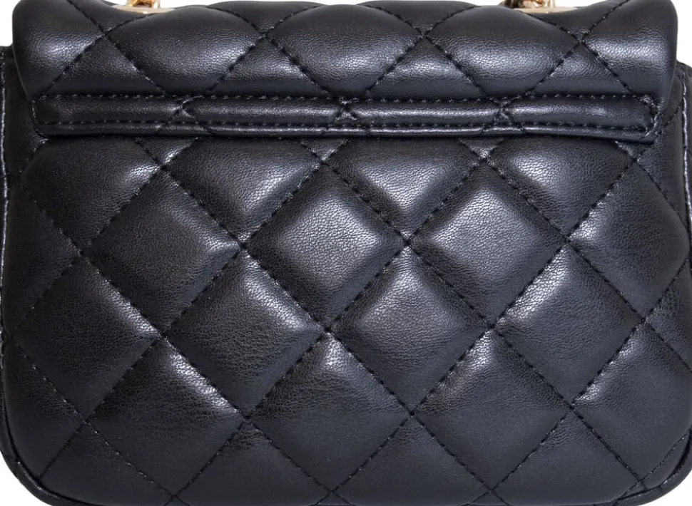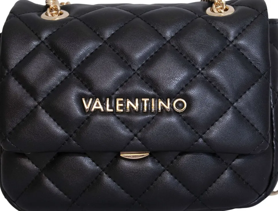 Valentinos “Ocarina” crossbody-taske åbnes for at afsløre et rummeligt interiør foret med polyester. Tasken er fremstillet af quiltet PU-læder og har en holdbar rem, der kan justeres til en kortere længde.