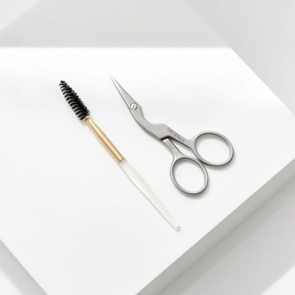 Specialfremstillet i et innovativt ergonomisk design med svungen form. De skarpe, tynde præcisionsblade griber fat om det enkelte hårstrå med stor nøjagtighed og under fuld kontrol. Spiralbørste til brynene medfølger. Rustfrit stål.